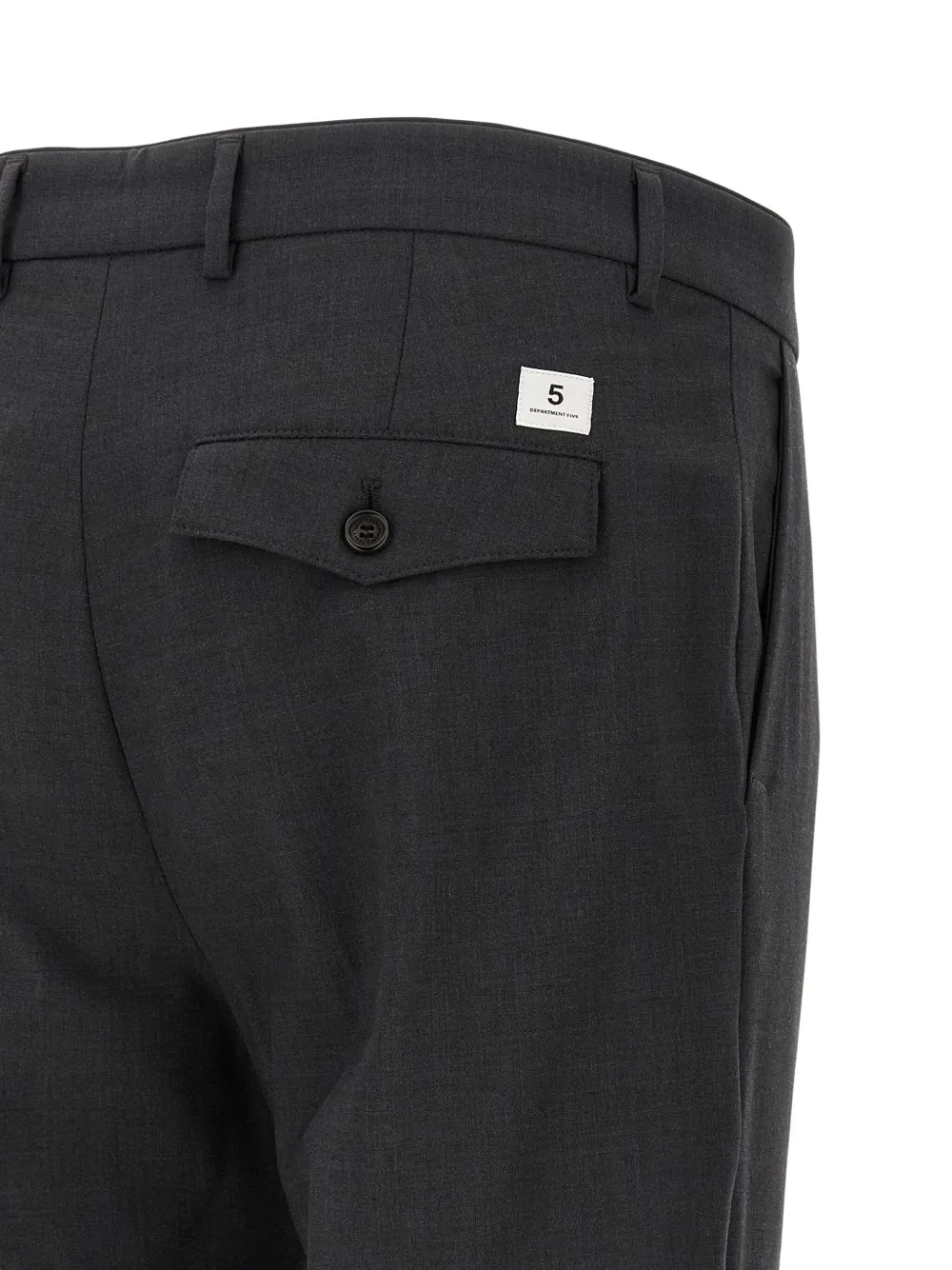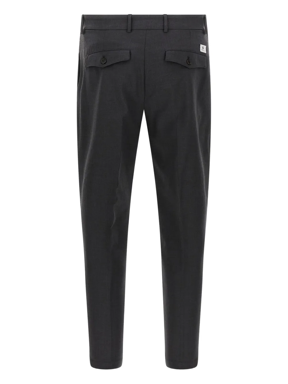 Серые отглаженные складки, застежка на пуговицы, карманы сзади, нашивка с логотипом, шерстяная смесь