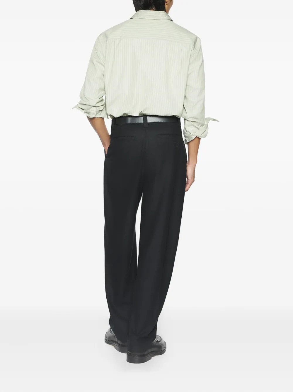 Черная шерсть с плиссировкой спереди и боковыми карманами сзади и прорезным карманом