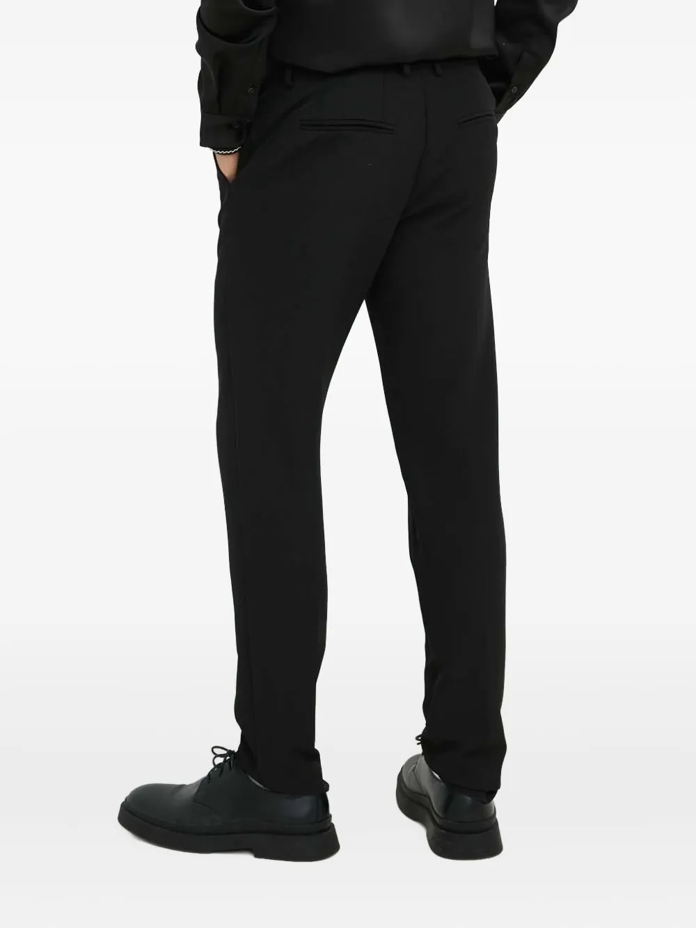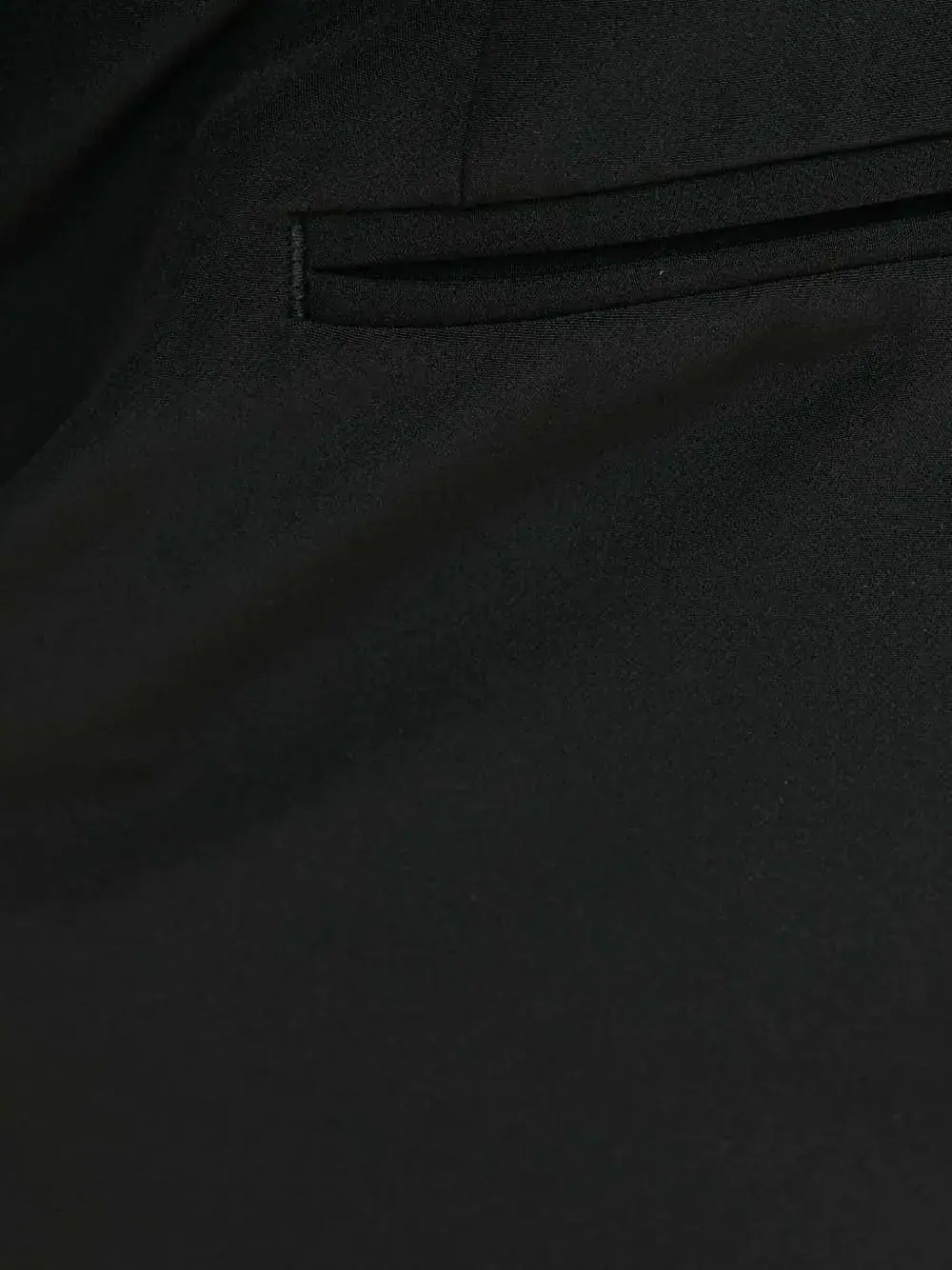 Черные прямые брюки с прорезным карманом, средней посадкой на талии, застежкой на пуговицы, без застежки спереди