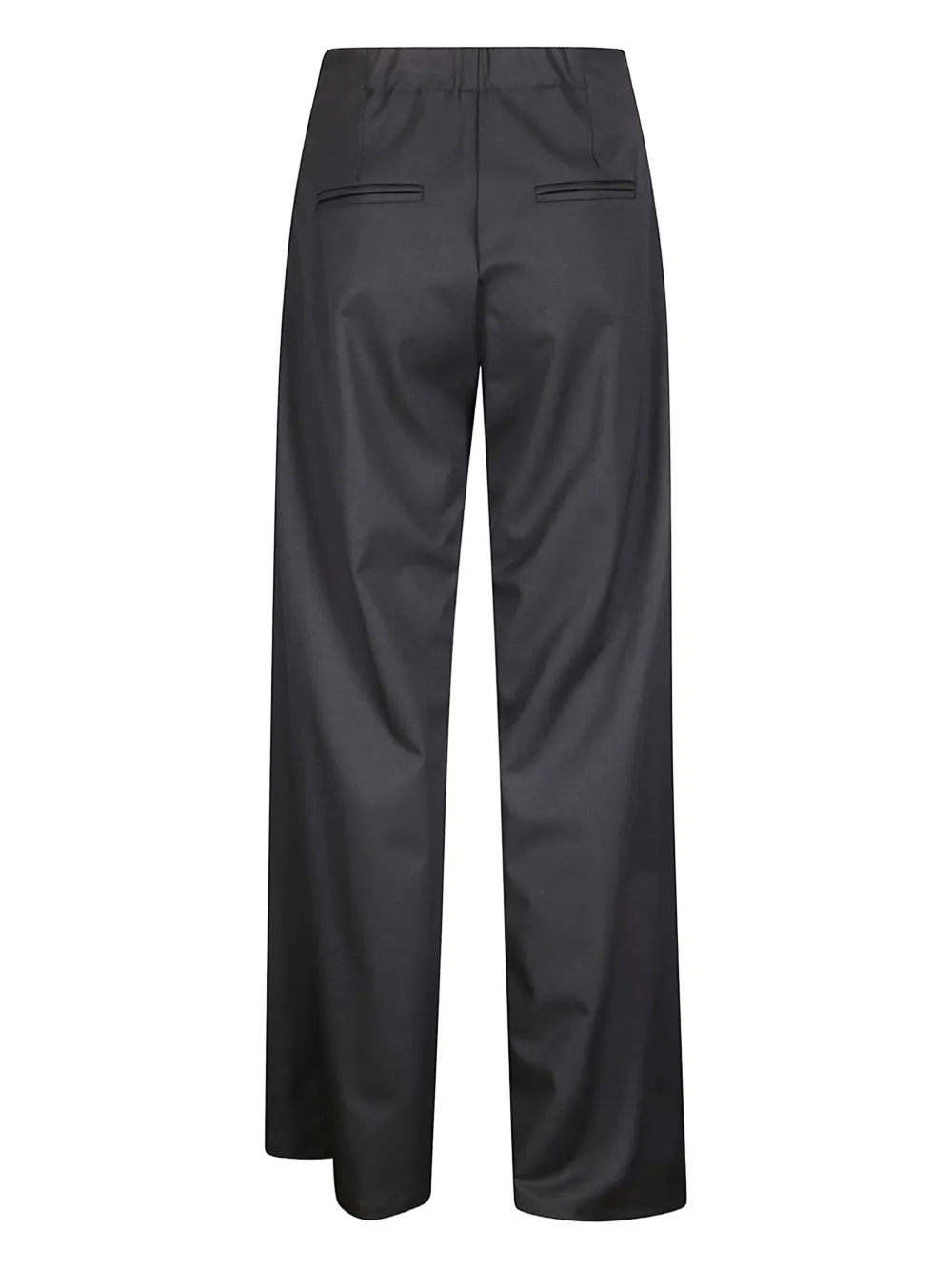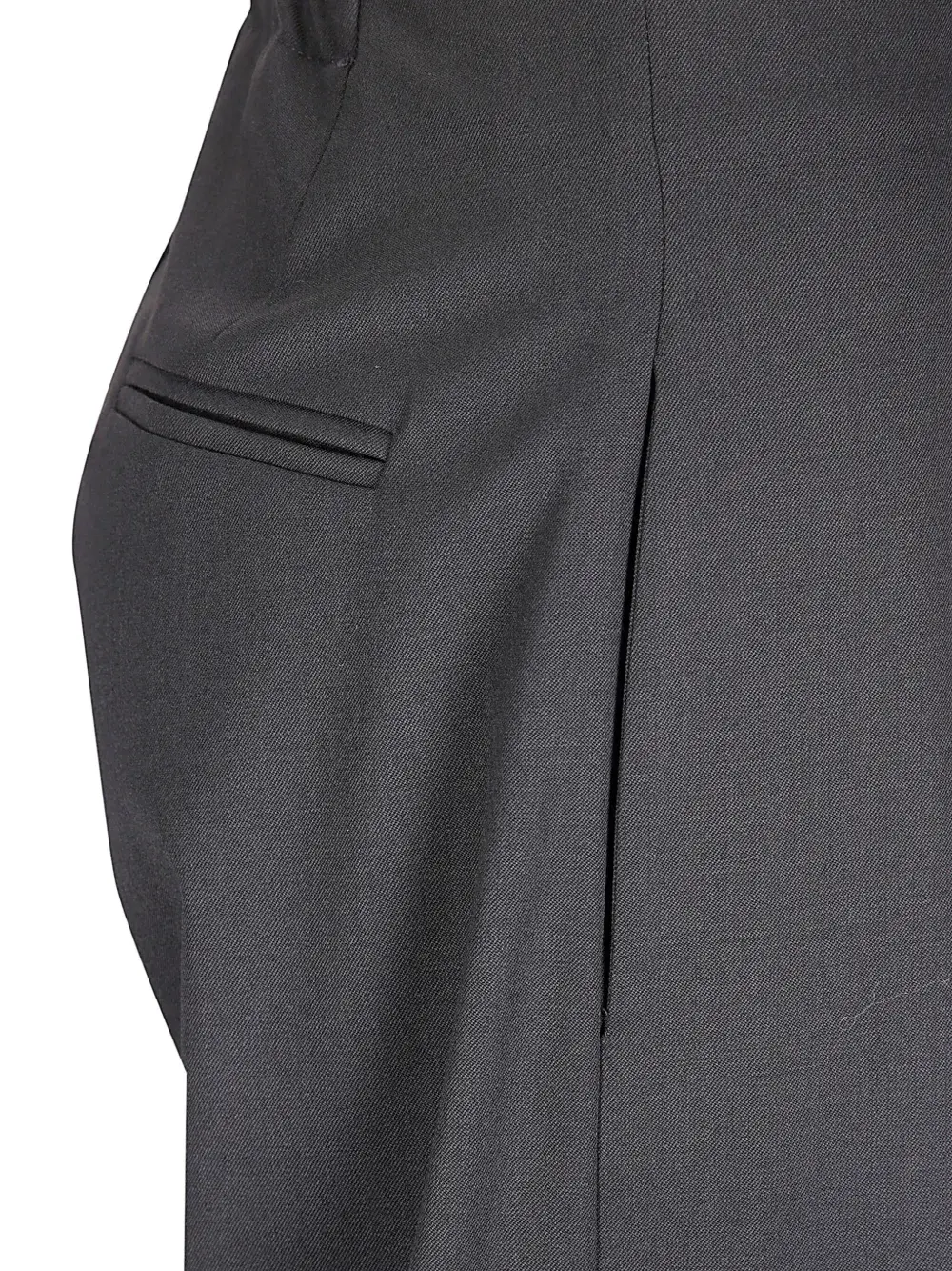 Черный эластичный пояс, прорезные карманы, прямой подол.
