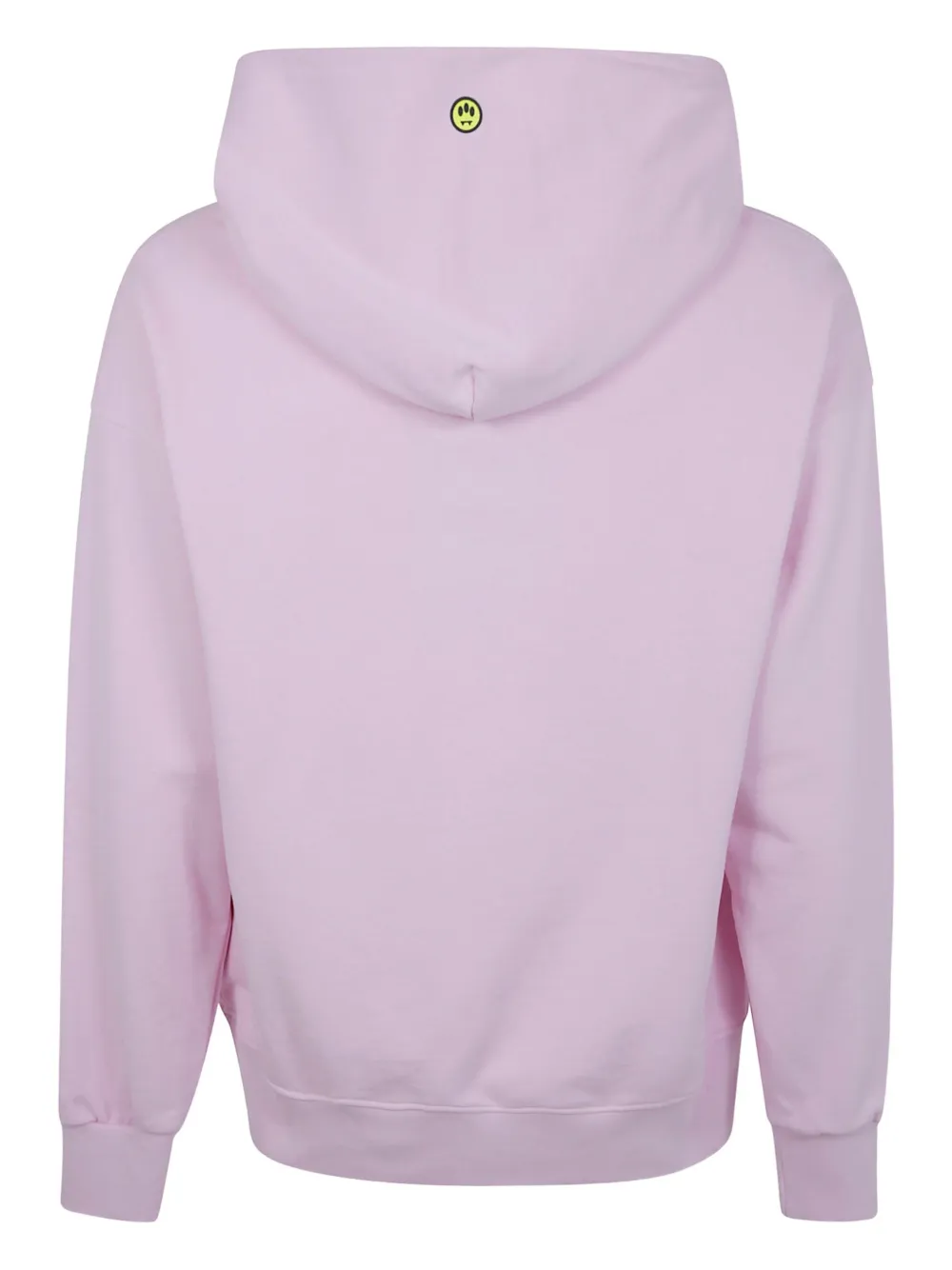 Розовый карман-кенгуру, капюшон на шнурке, длинные рукава, хлопковый материал, вышитый логотип.