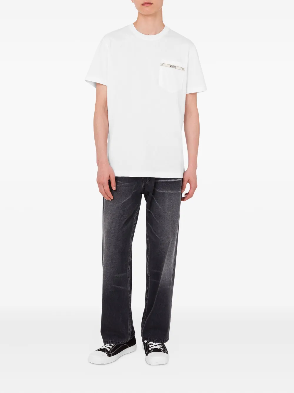 Белый нагрудный карман, короткие рукава, круглый вырез, хлопок