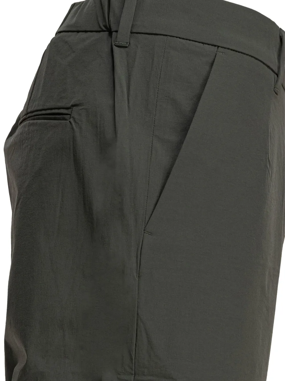 Темно-зеленый, два задних кармана, плоский перед, прямой брючины, эластичный пояс