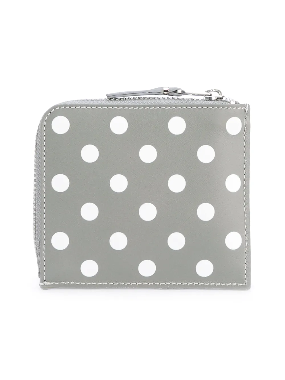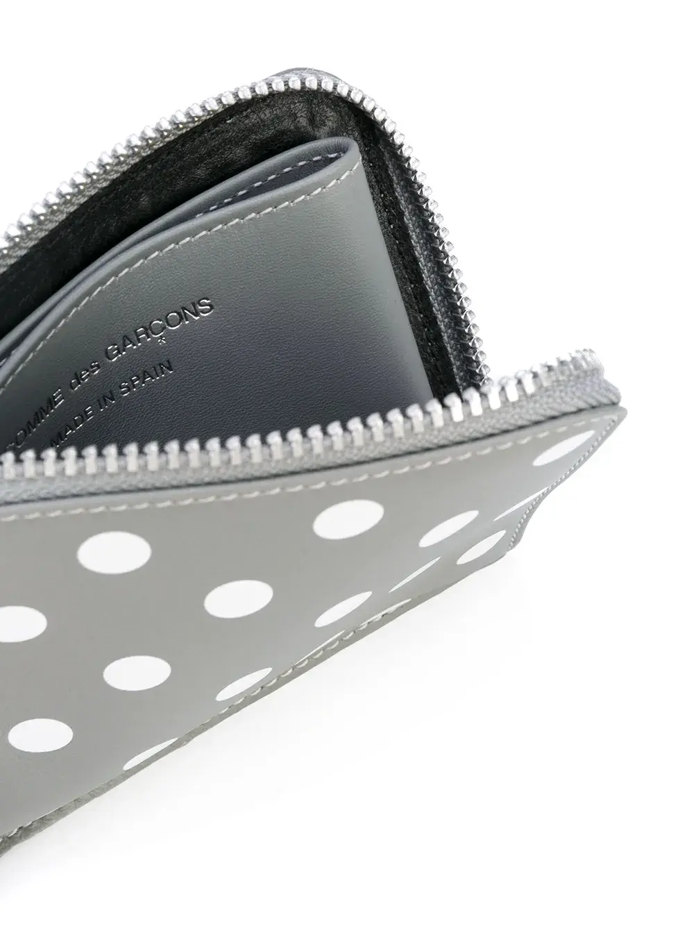 Серый с белым кожаный кошелек в горох от Comme Des Garçons Wallet.Модель в стиле унисекс.