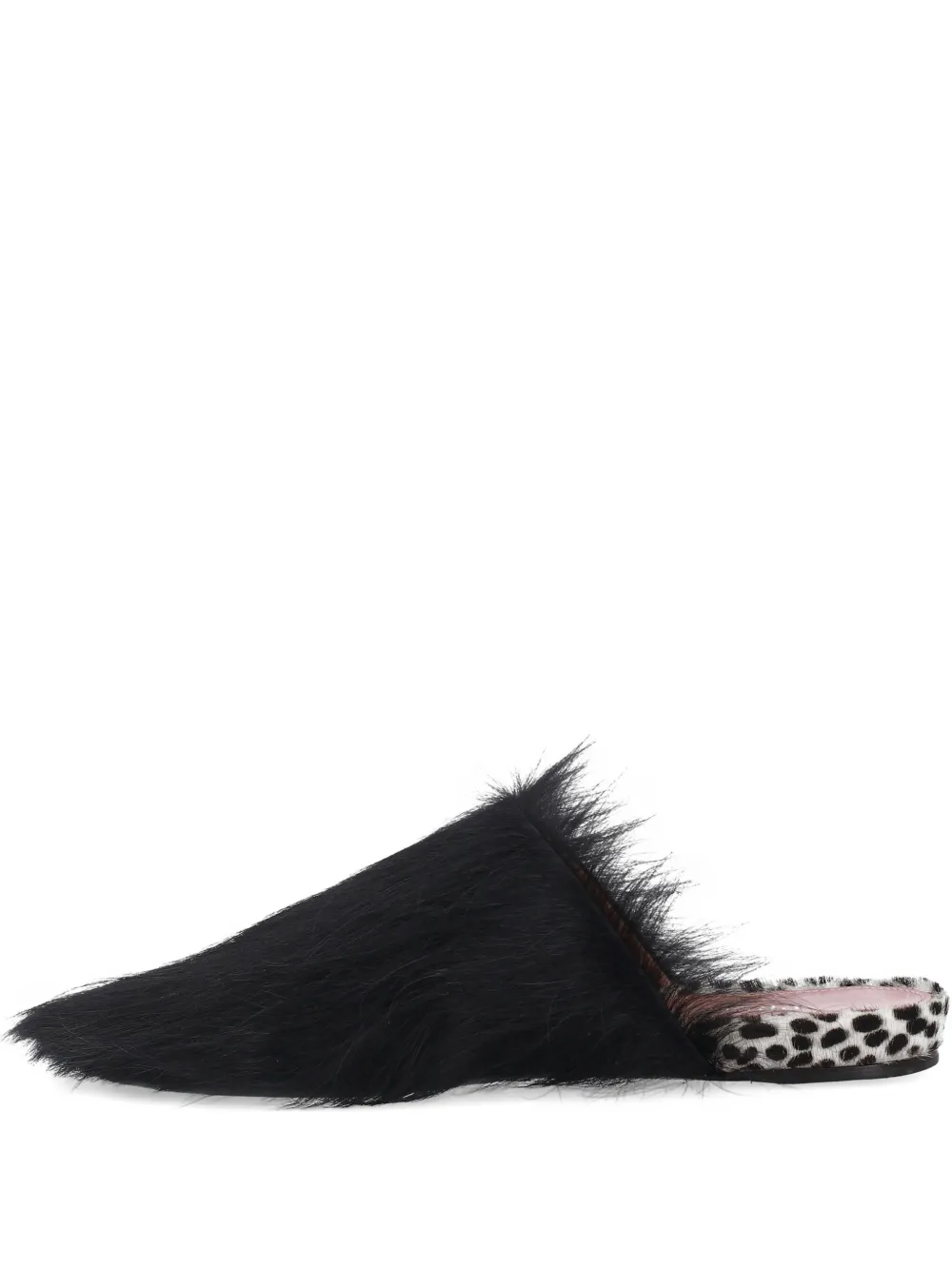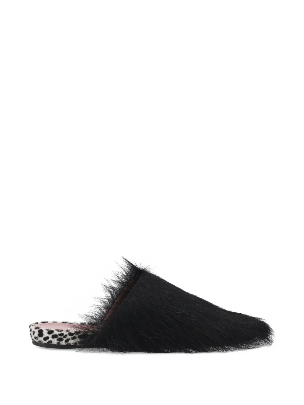 Черные туфли из телячьей шерсти с открытым носком и плоской подошвой в горошек
