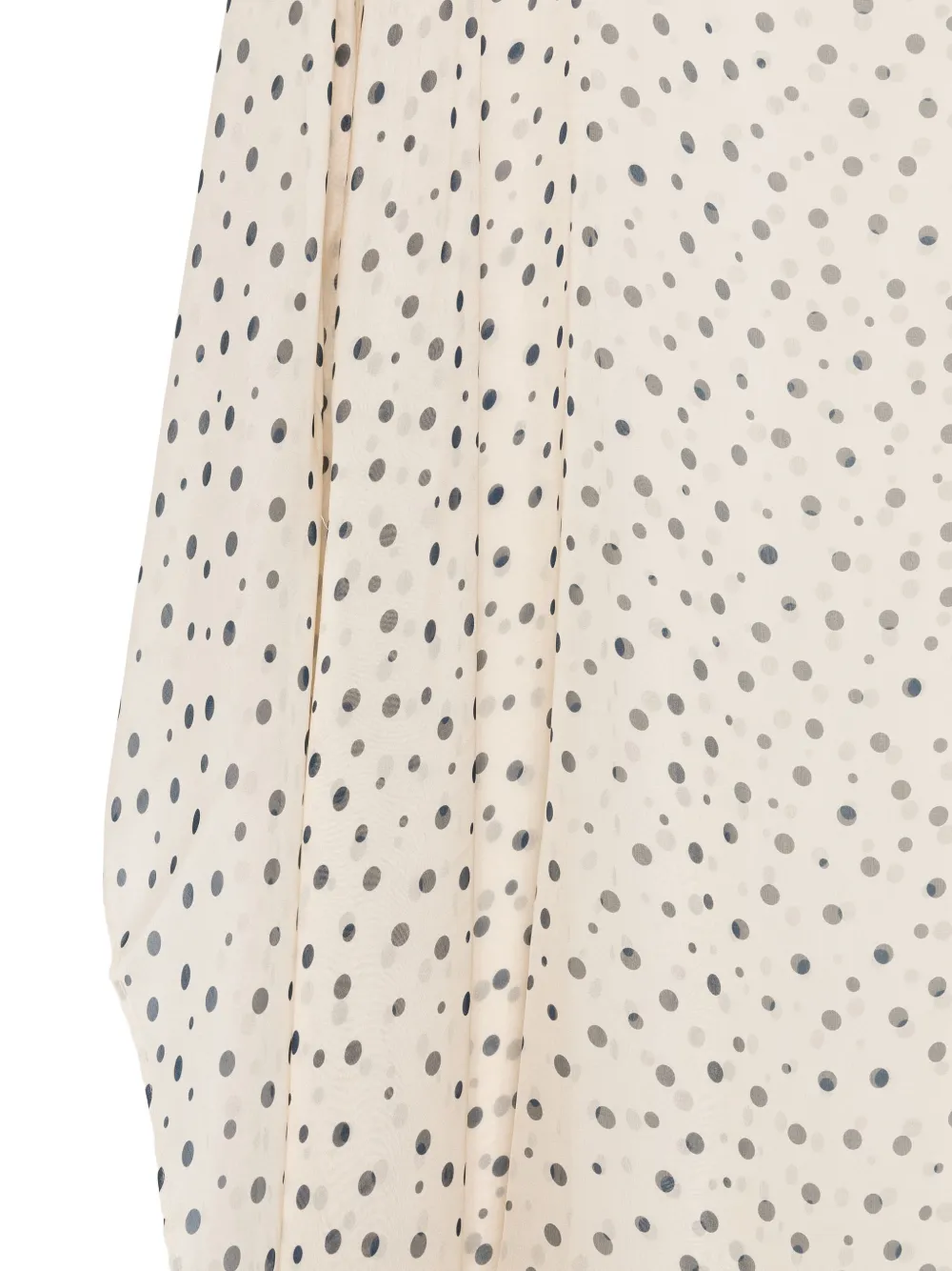 Шелковая ткань с рисунком в белый горошек, асимметричным подолом и вырезом-лодочкой