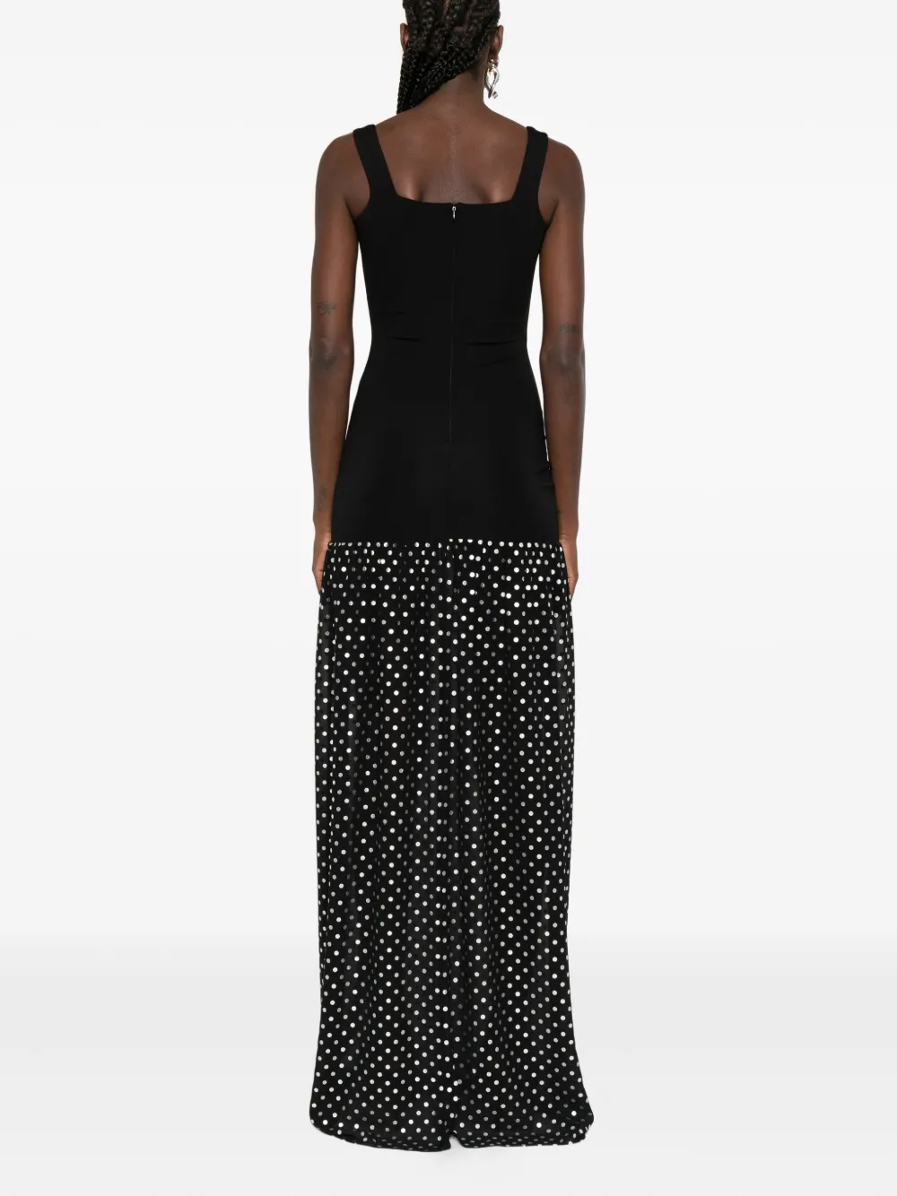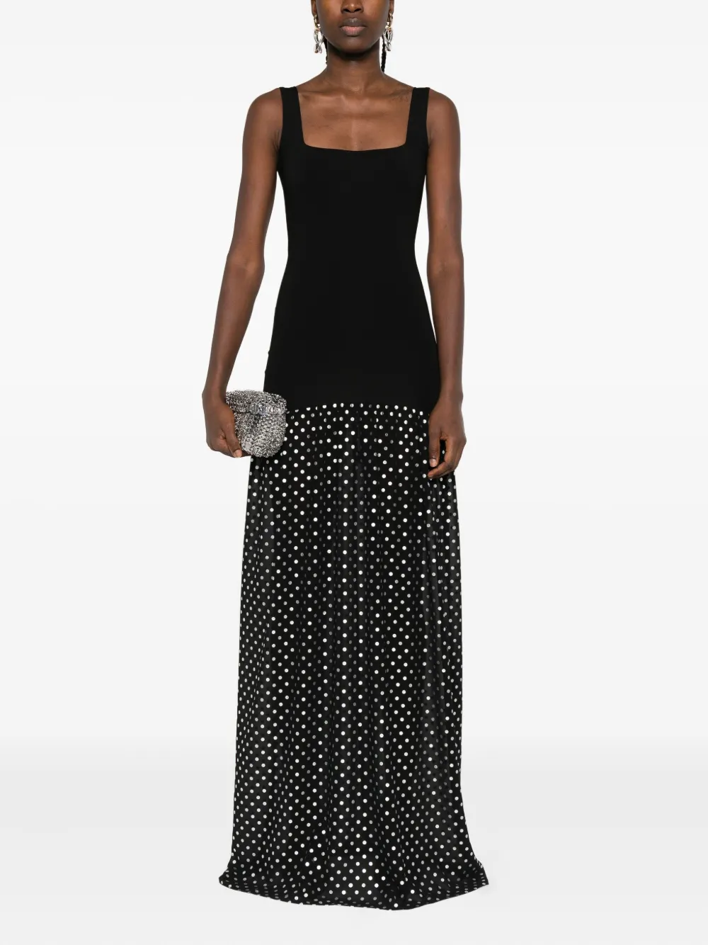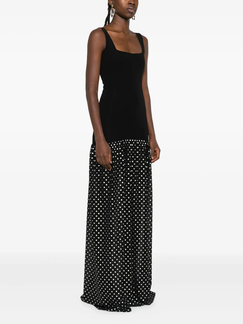 Черное платье в горошек с квадратным вырезом, без рукавов, макси-длина