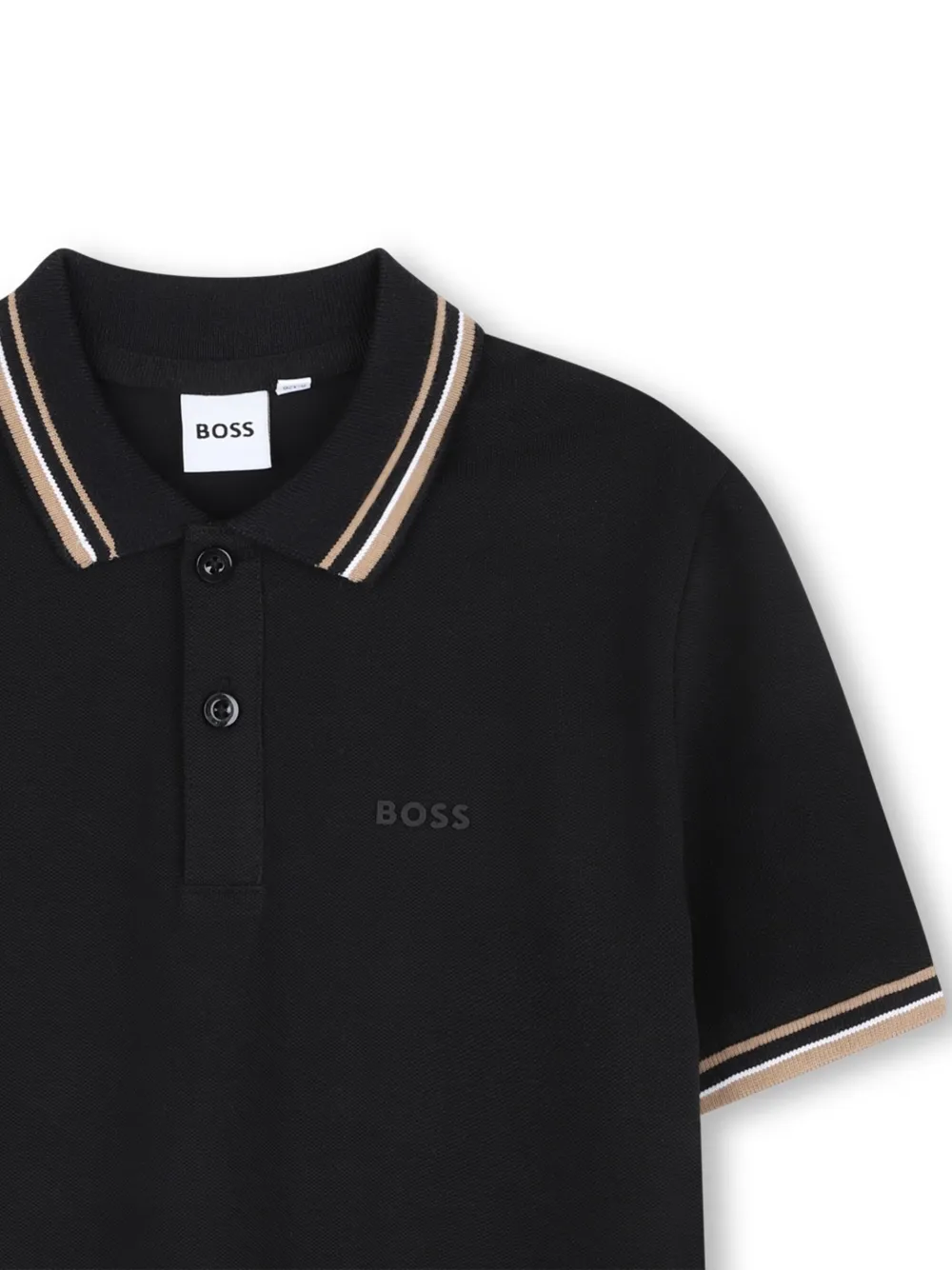 Рубашка поло с логотипом BOSS Kidswear, черный
