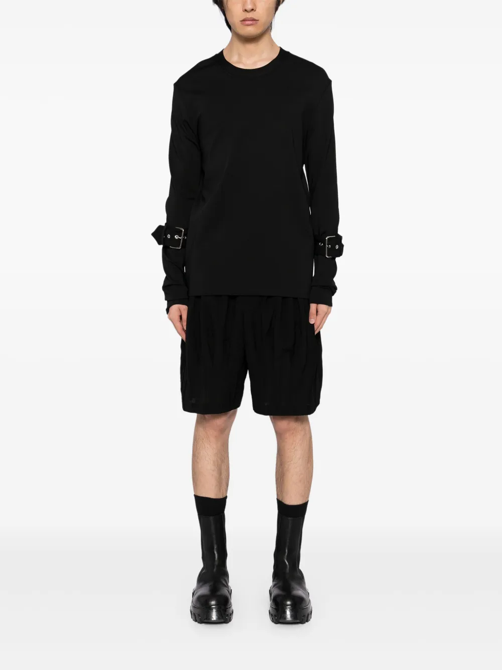 Черная потайная застежка-молния спереди, эластичный пояс сзади.