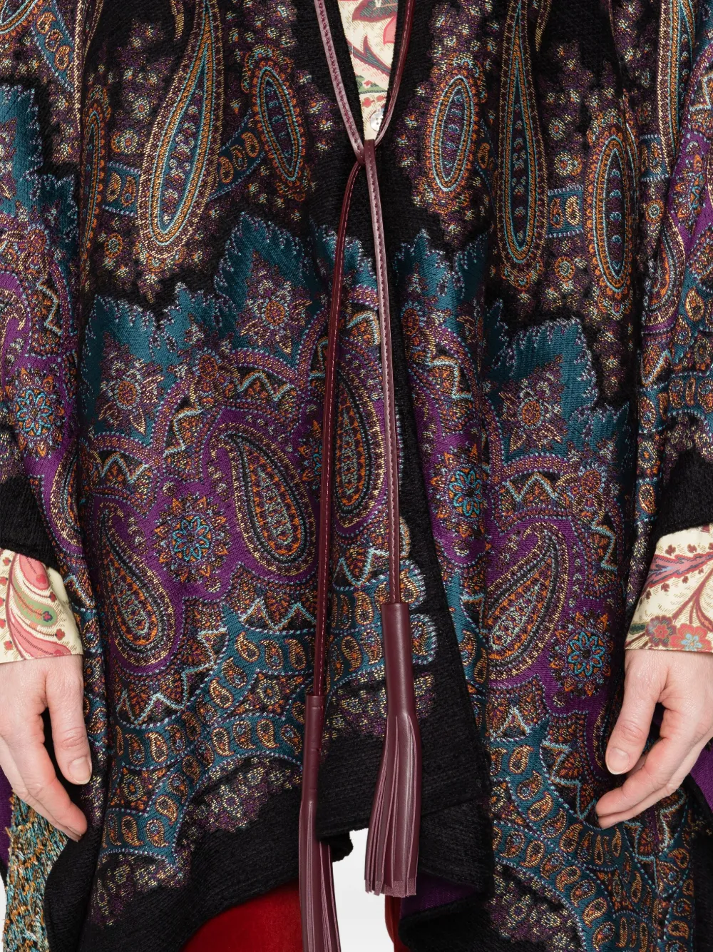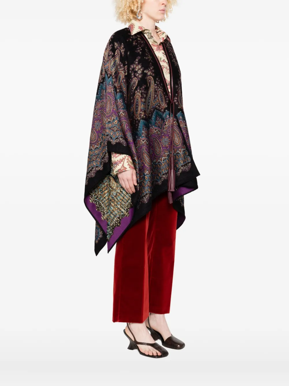 Пончо с кисточками и принтом пейсли ETRO, черный