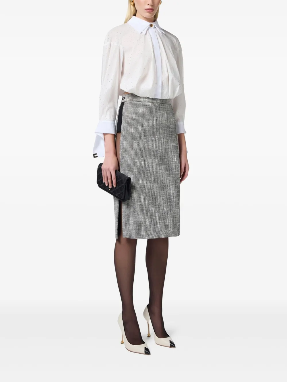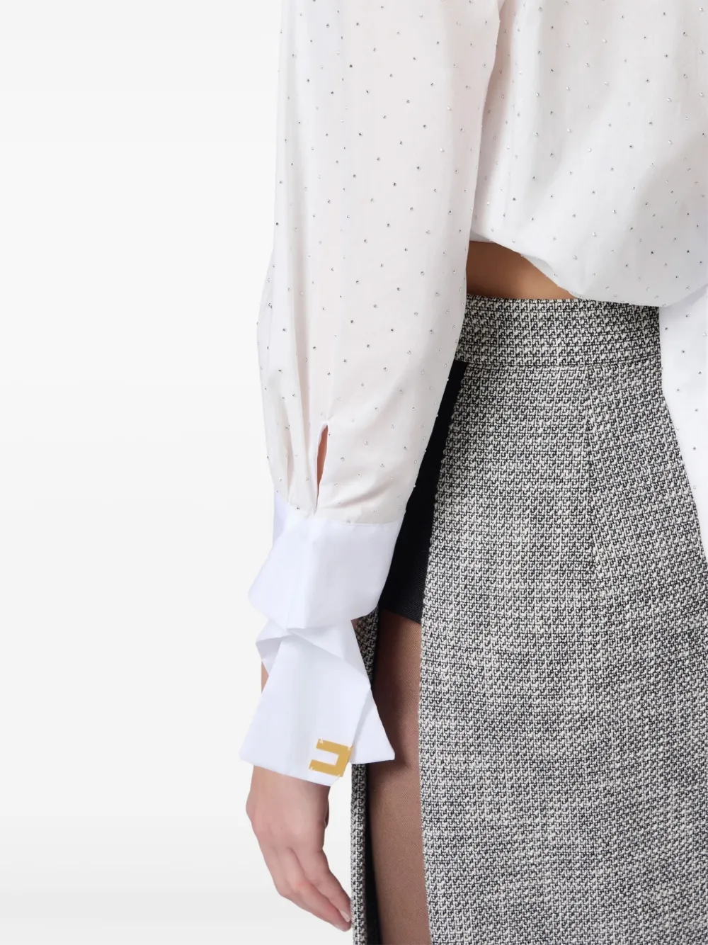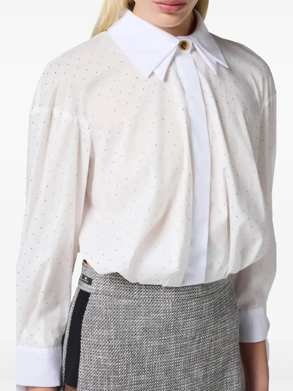 Поплиновая рубашка со стразами Elisabetta Franchi, белый