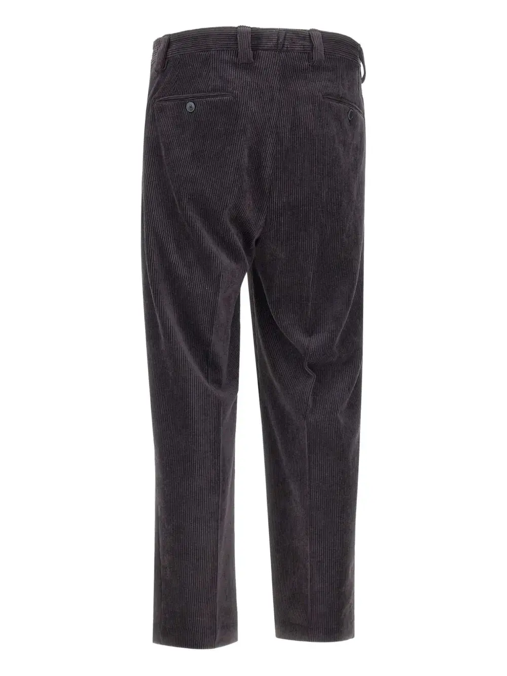 Темно-синяя вельветовая текстура, боковые прорезные карманы, задние прорезные карманы, застежка на пуговицы спереди, шлевки для ремня