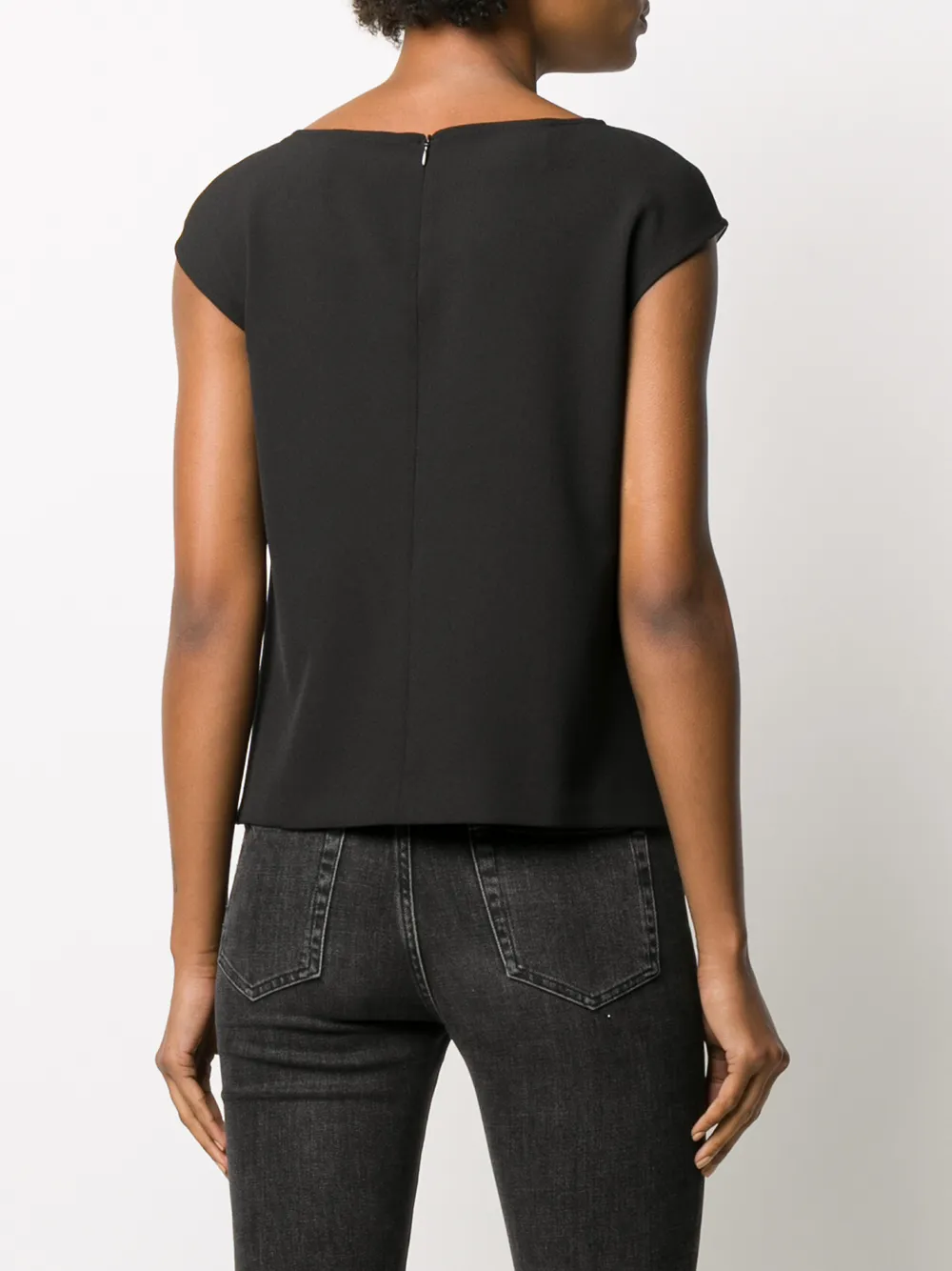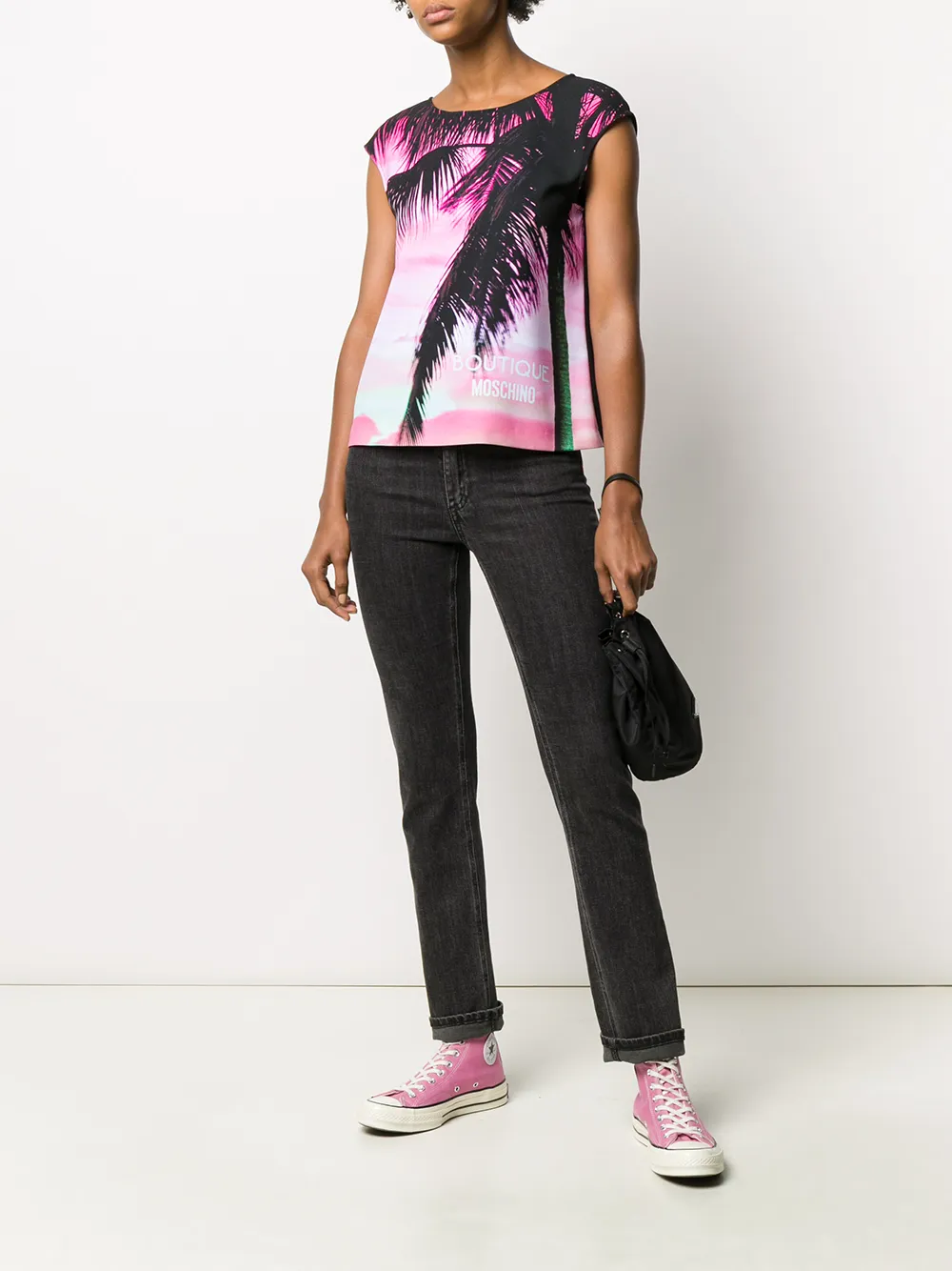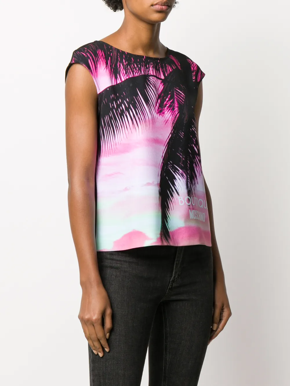 Топ с принтом от Boutique Moschino. Графический принт, принт с логотипом спереди, застежка на молнии сзади, круглый вырез и модель без рукавов.
