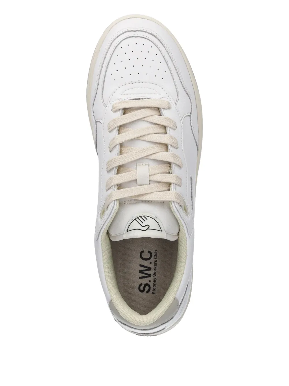 Верх из белой кожи, подошва кремового цвета, шнуровка, перфорированные детали, низкий верх