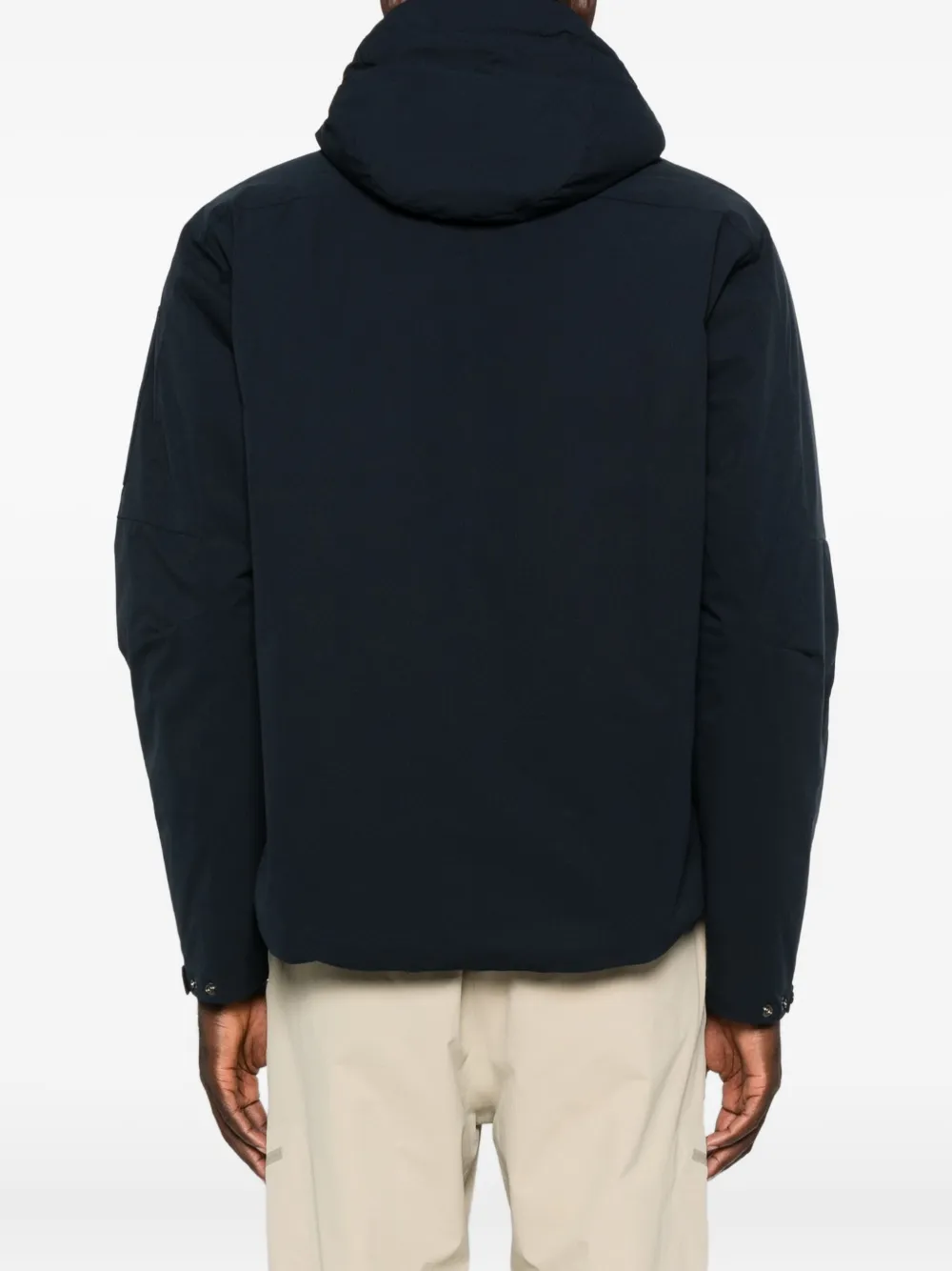 Темно-синий капюшон, застежка-молния, длинные рукава, два кармана, мягкая подкладка внутри. Компания CP Company рекомендует снимать все съемные аксессуары перед стиркой.