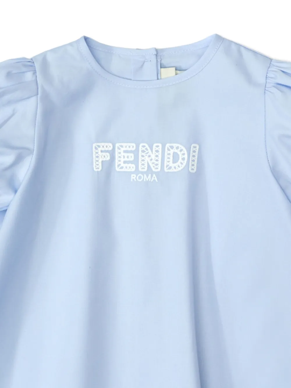 Платье с вышитыми рукавами-буфами FENDI KIDS, синий