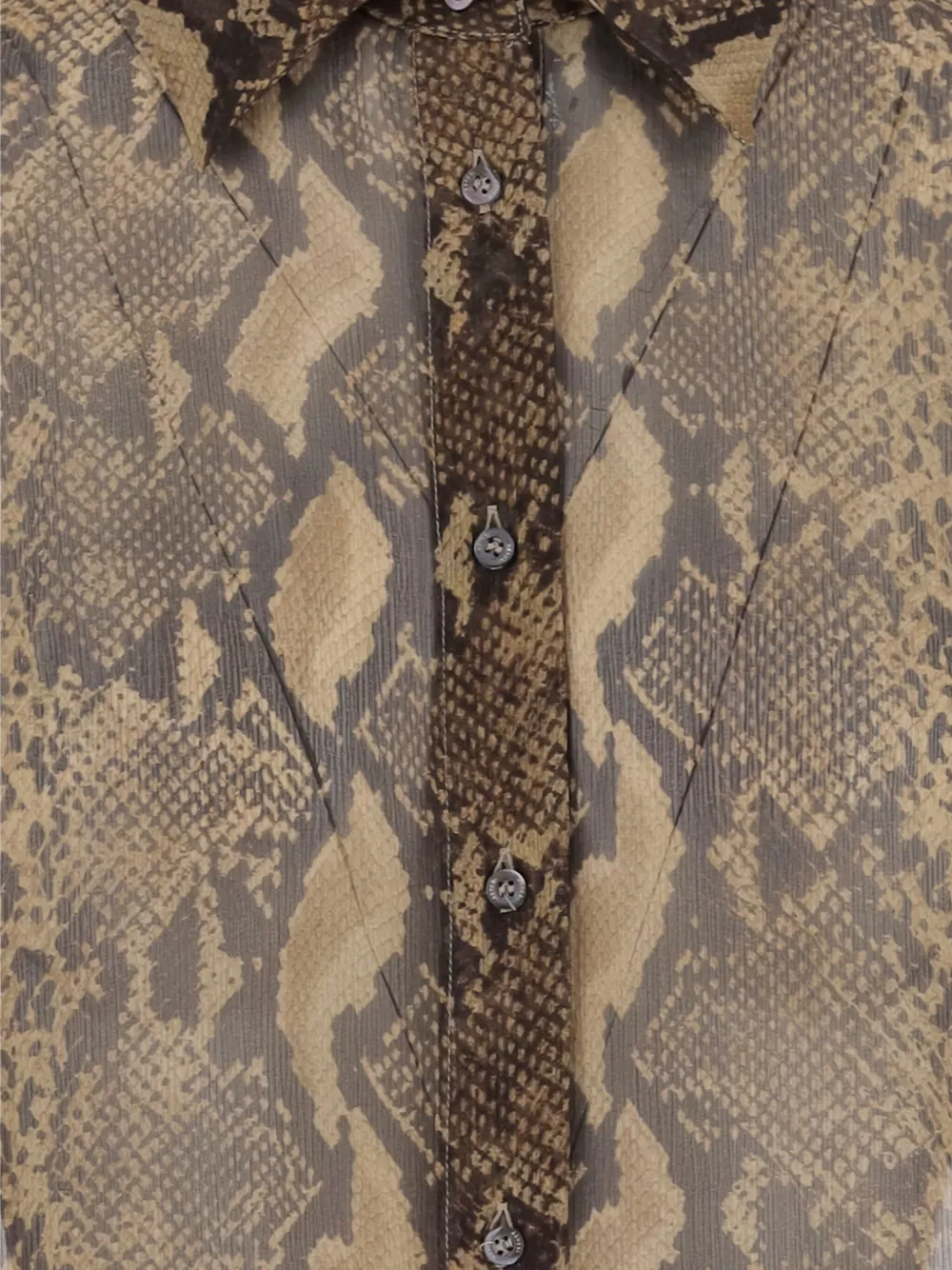 Коричневый принт под питона, длинные рукава, застегивающиеся на пуговицы манжеты, застежка на пуговицы спереди, закругленный подол