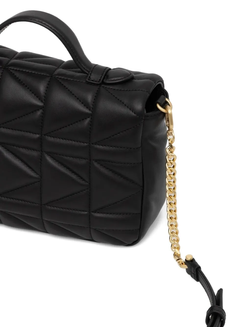 Черная стеганая модель с золотистой застежкой, ручка сверху, регулируемый плечевой ремень