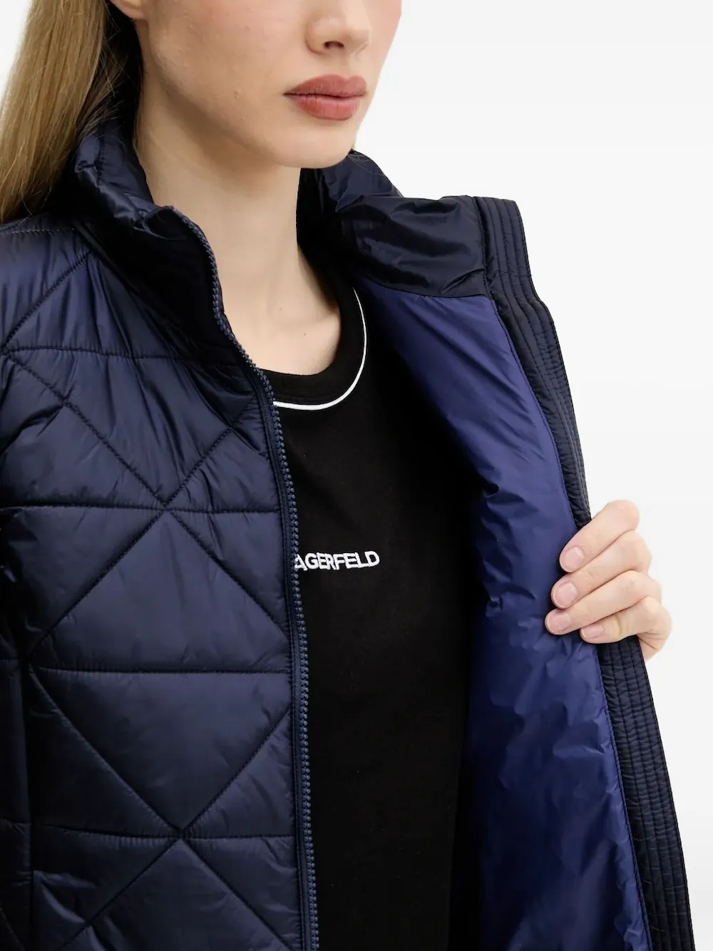 Темно-синяя ромбовидная застежка-молния с высоким воротом, без рукавов, с логотипом