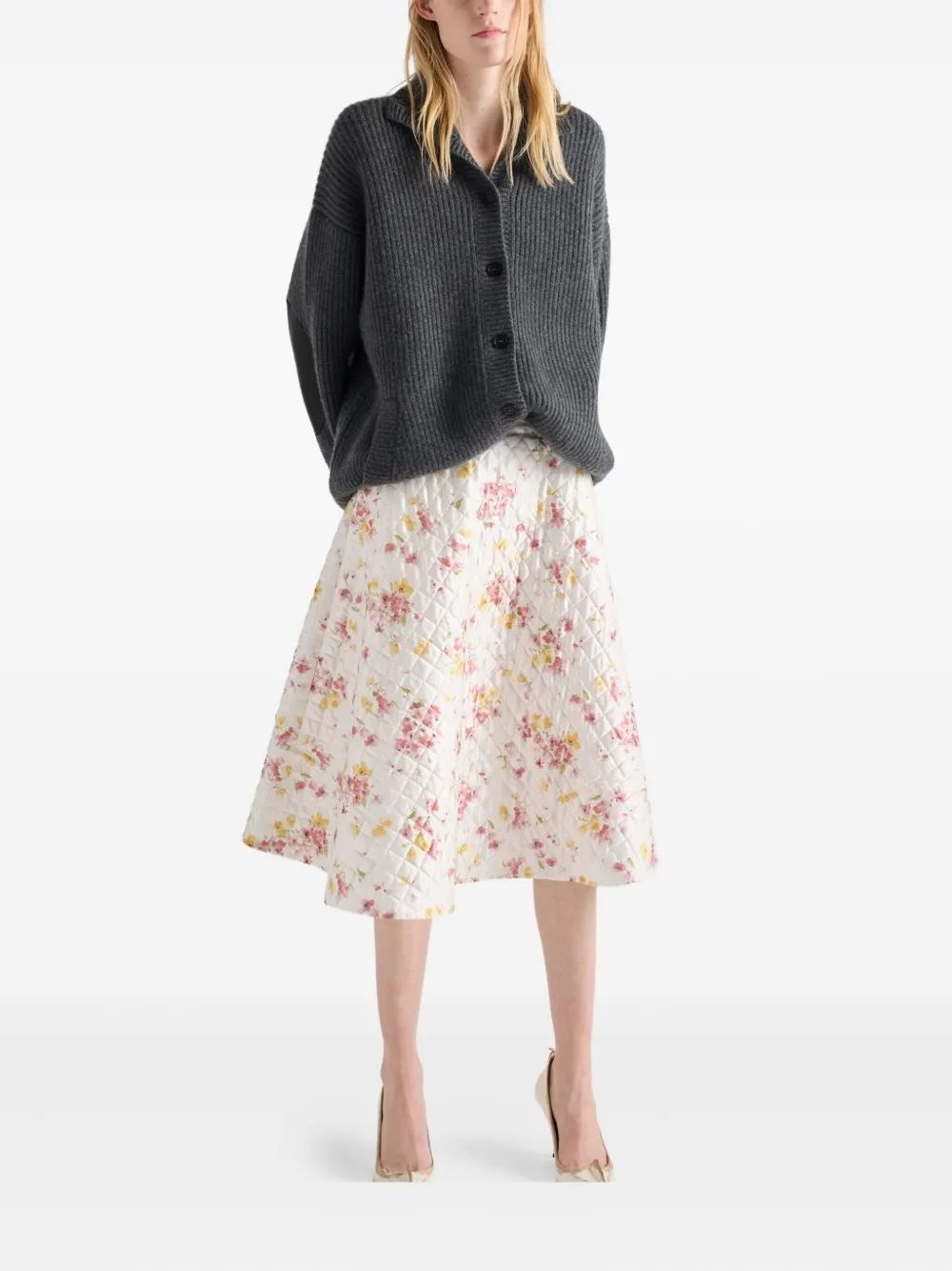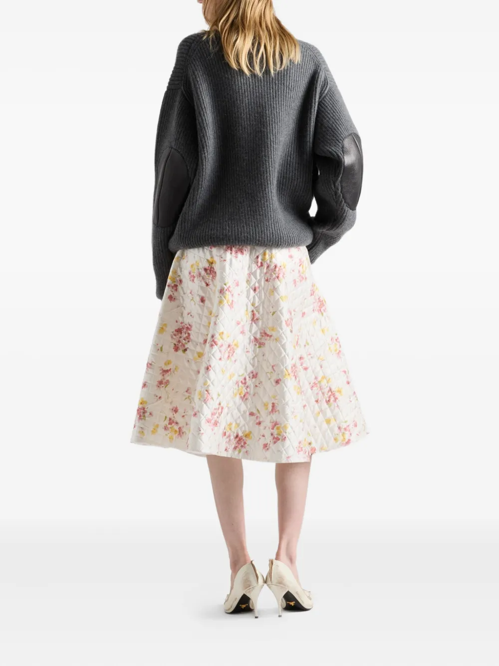 Стеганая юбка миди с цветочным принтом Prada, белый