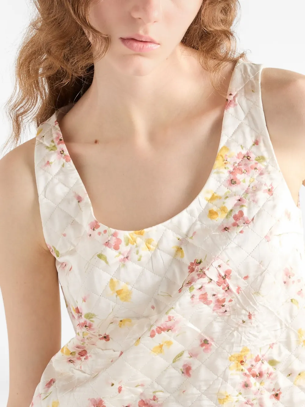 Стеганое платье мини с цветочным принтом Prada, нейтральный