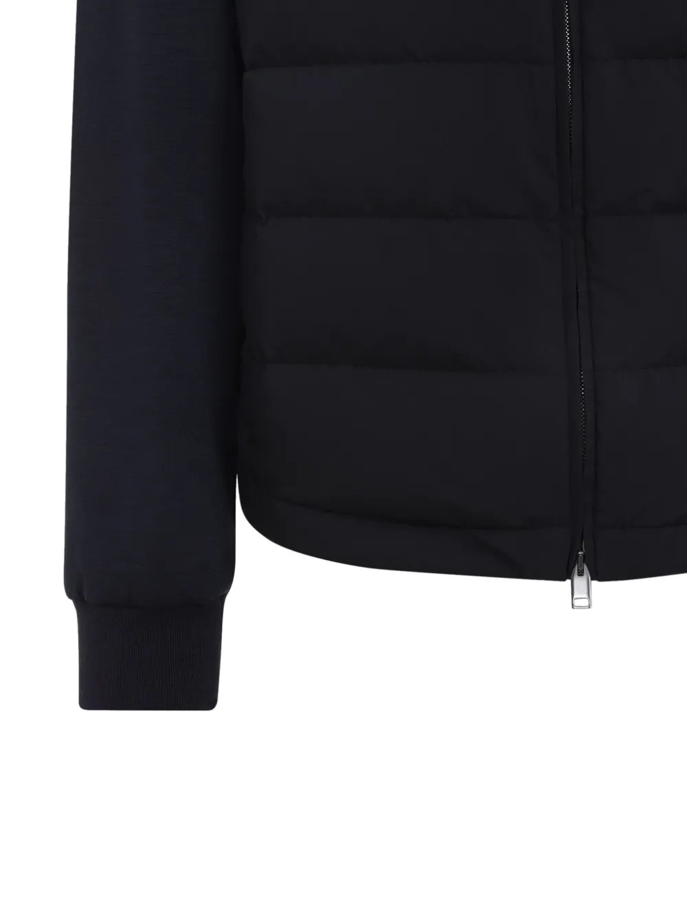 Темно-синий стеганый дизайн, высокий ворот, застежка-молния, аппликация с логотипом, ребристые манжеты