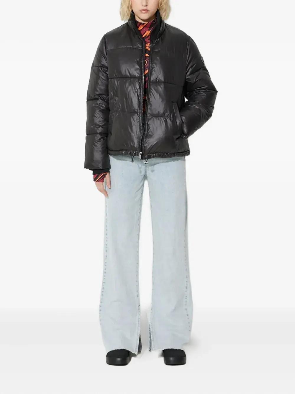 Черная стеганая модель, застежка-молния, прорезные карманы, нашивка с логотипом
