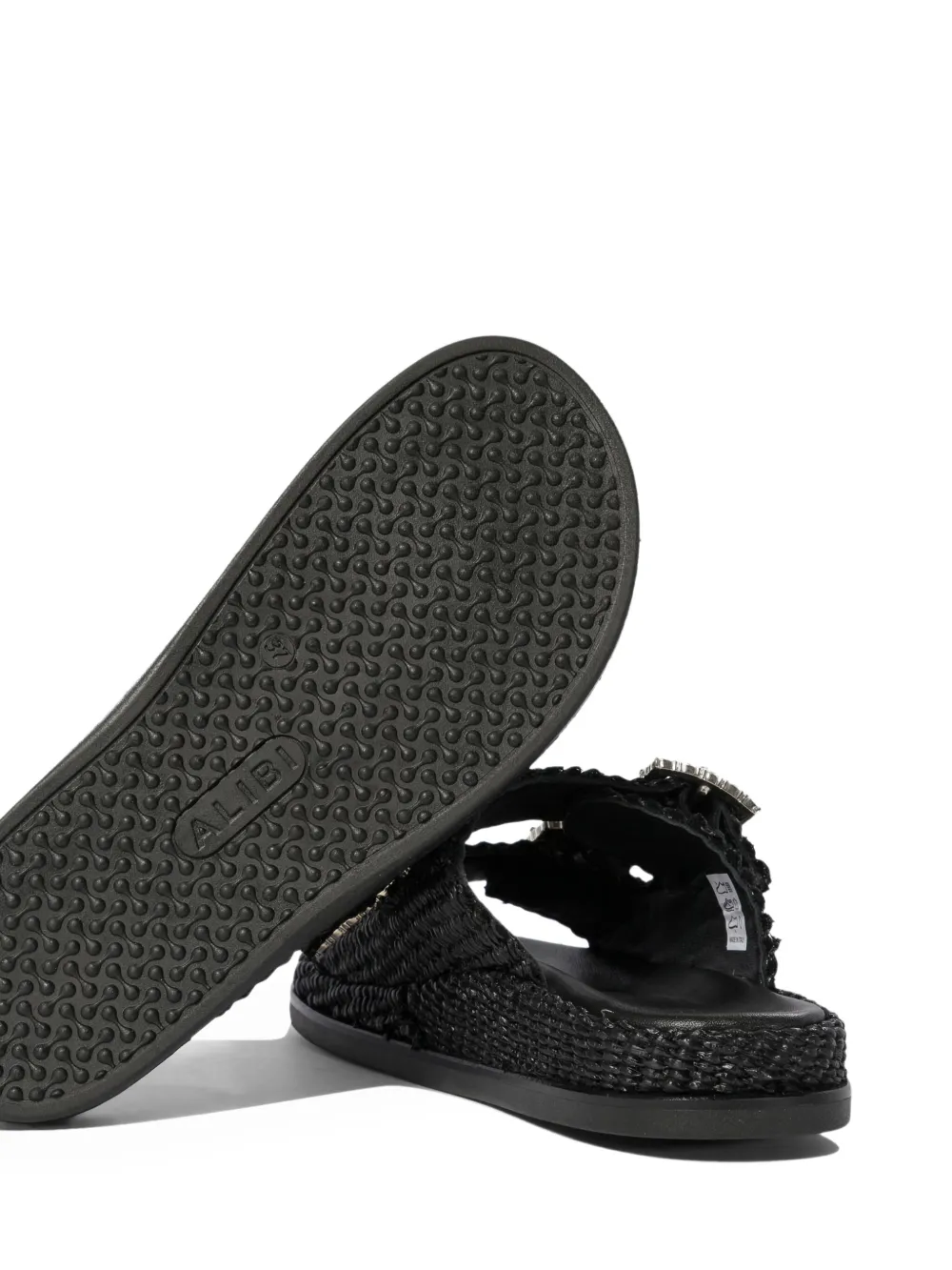 Сандалии с пряжками, украшенные рафией ALIBI, черный