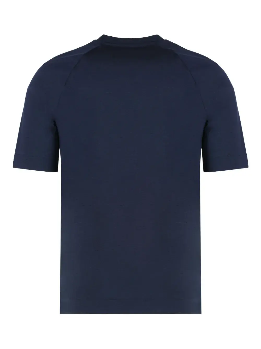 Синие рукава реглан, круглый вырез горловины, короткие рукава.