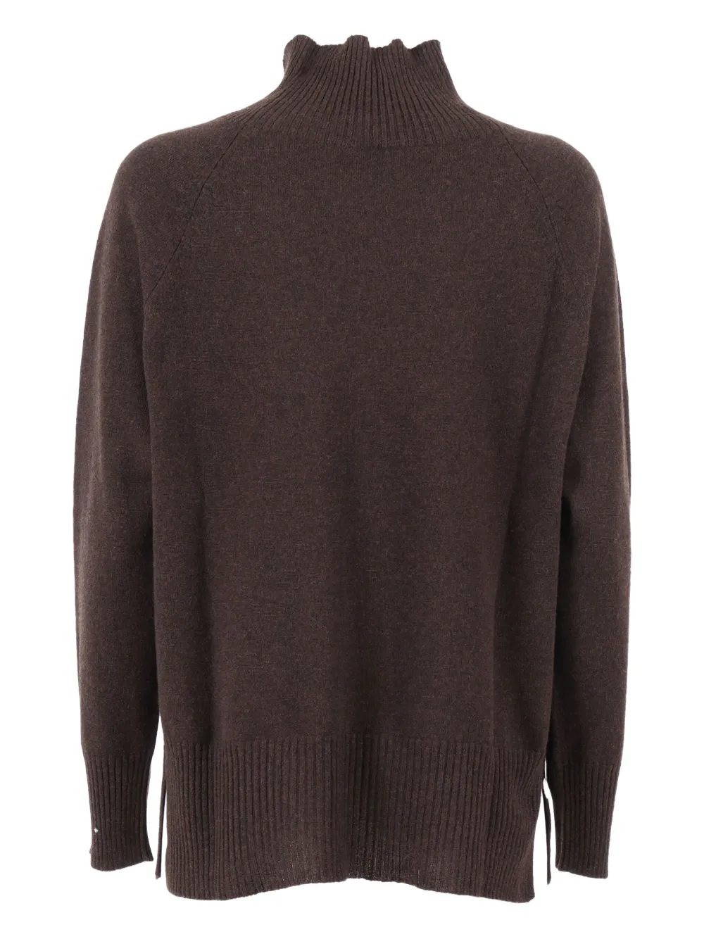 Коричневая водолазка с рукавами реглан, боковыми разрезами, ребристым подолом из смеси шерсти и кашемира.