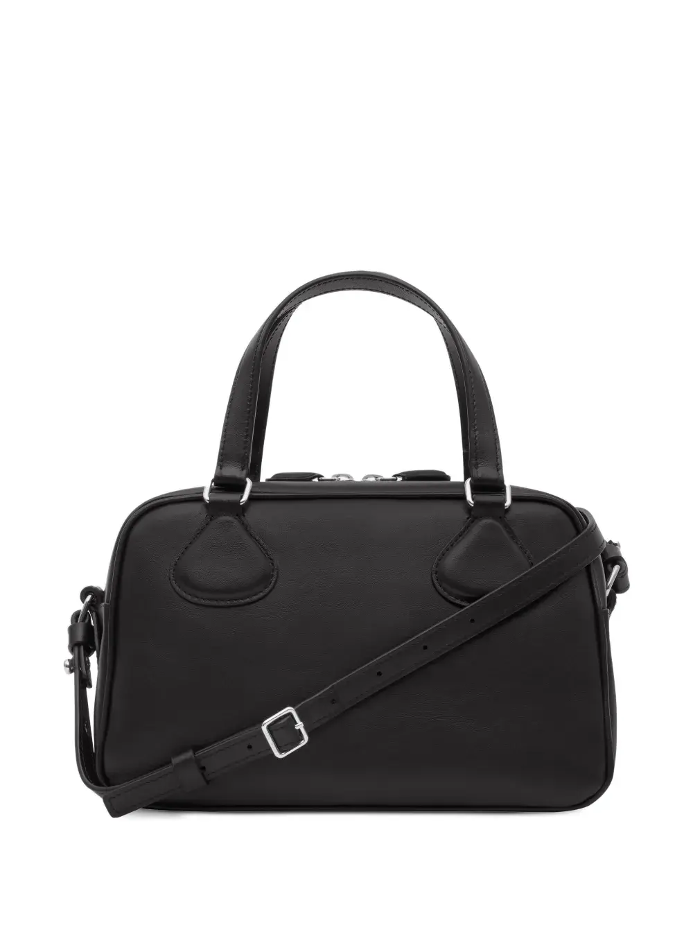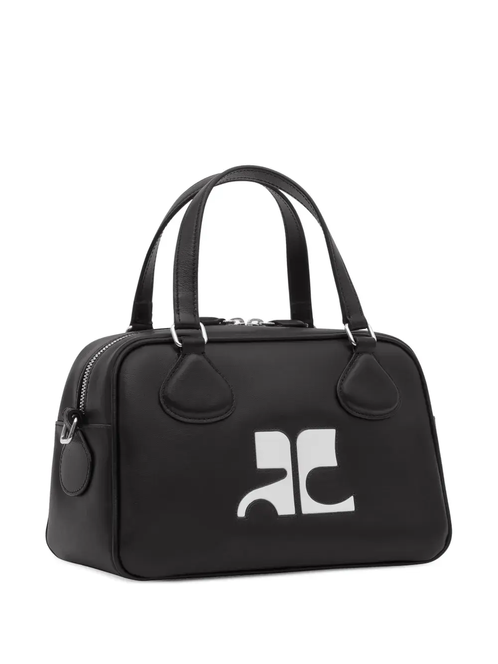 Черный/белый, строчка в тон, серебристая фурнитура, вышитый логотип спереди, двусторонняя молния, две верхние ручки, съемный регулируемый ремень на плечо и основное отделение.