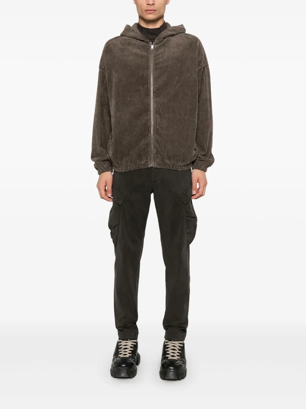 Подробнее о товаре: • серый • смесовый хлопок • микровельвет • окрашивание готовой вещи по технологии garment dye • застежка на молнии спереди • объемный капюшон • приспущенные плечи • длинные рукава • эластичные манжеты • два вшитых кармана по бокам • объемный капюшон • приспущенные плечи • длинные рукава • эластичные манжеты • нашивка с логотипом сзади • эластичный подол