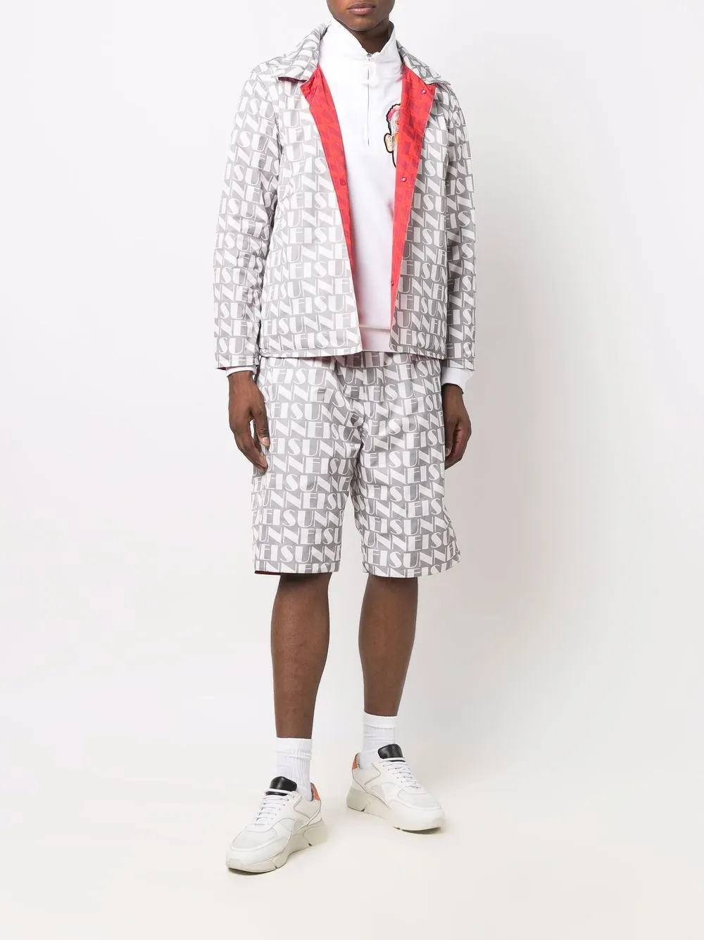 Двухсторонний дизайн, монограмма, косой воротник, застежка на кнопках и длинные рукава.