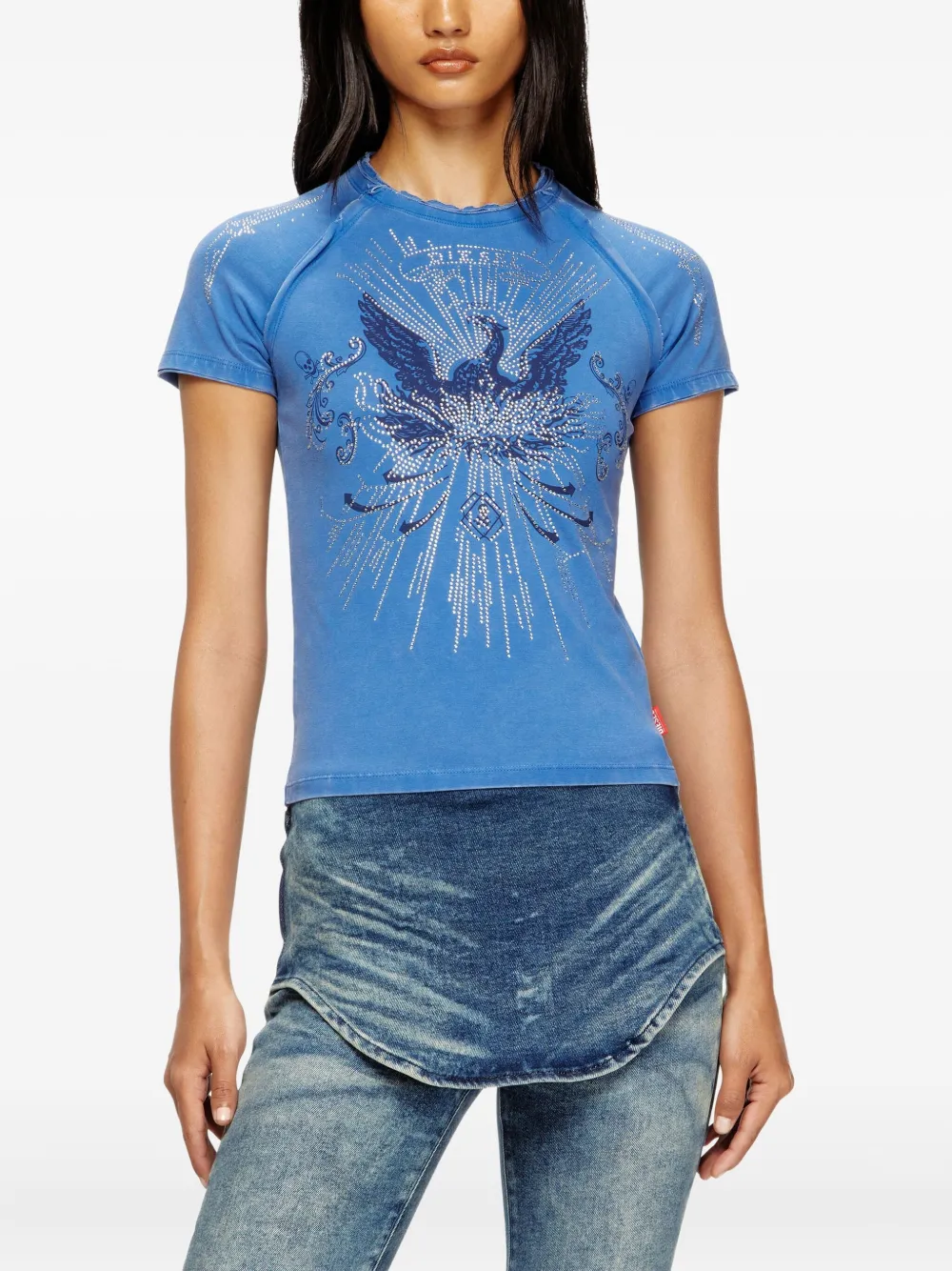 Футболка с рукавами реглан, украшенная стразами DIESEL, синий