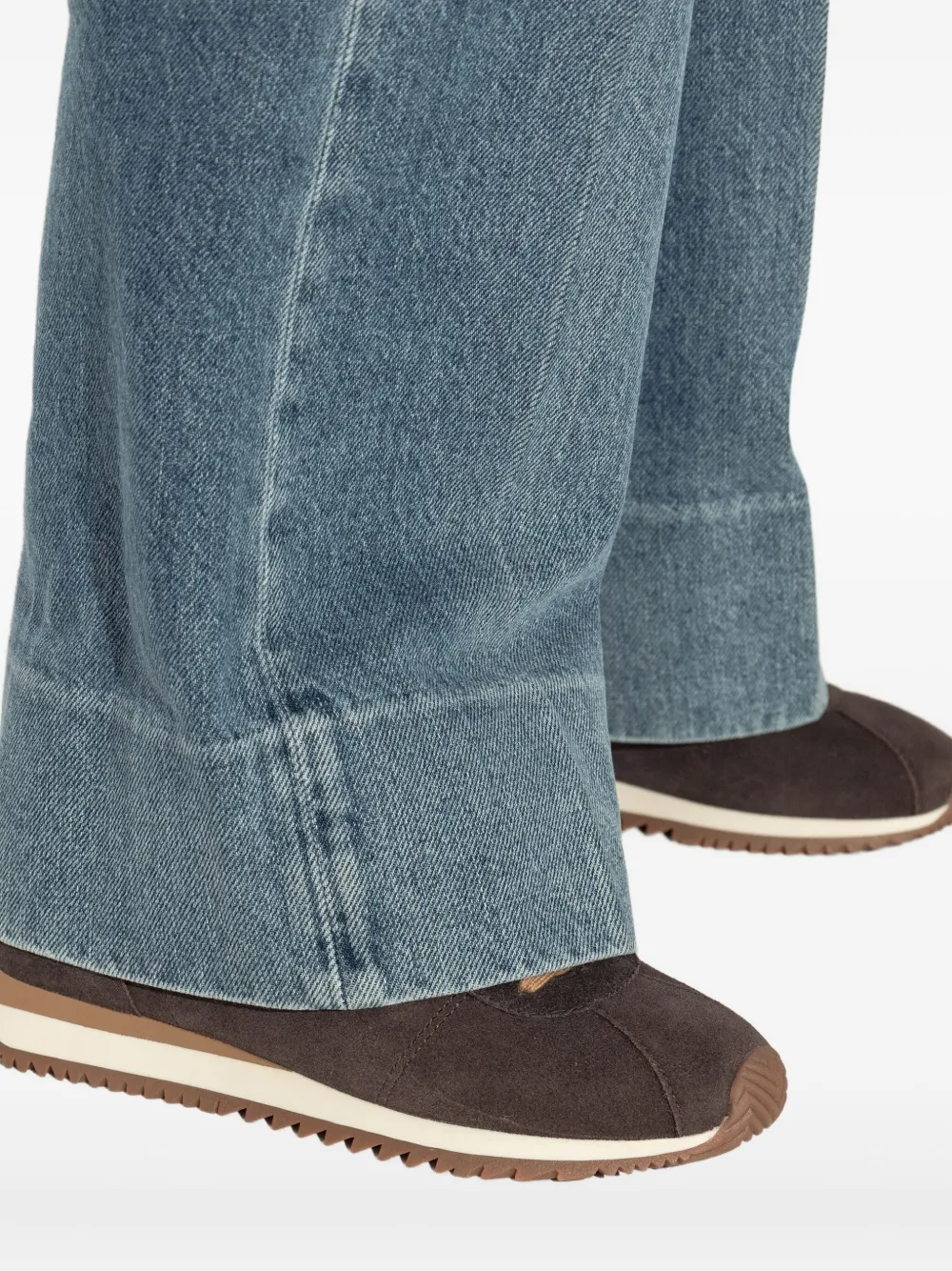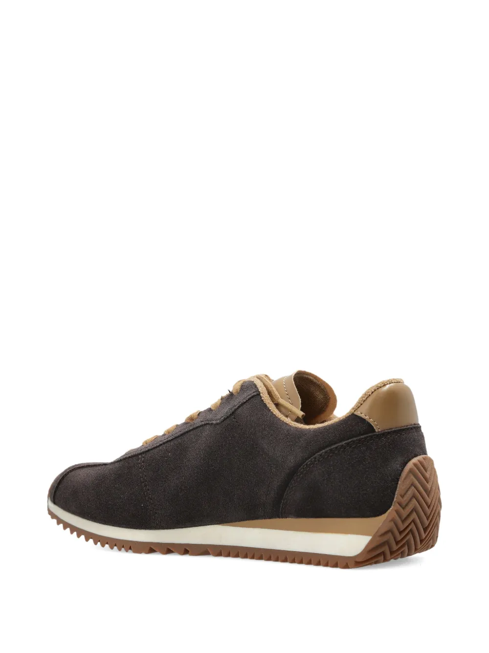 Верх из темно-коричневой замши, кожаный каблук, шнуровка, плоская подошва, резиновая подошва.