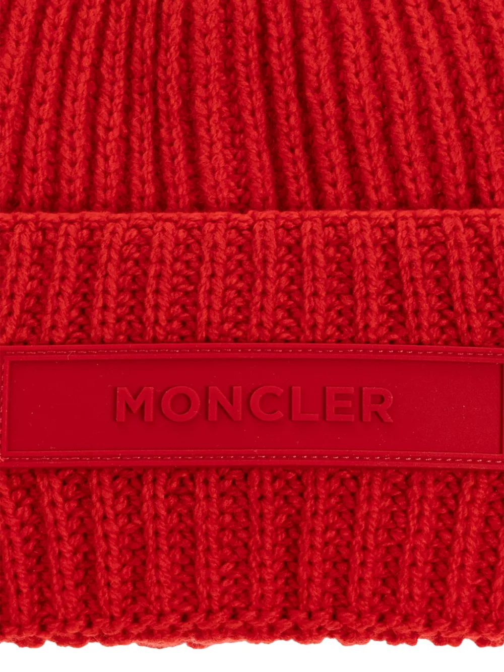 Шапка бини в рубчик с логотипом MONCLER, красный