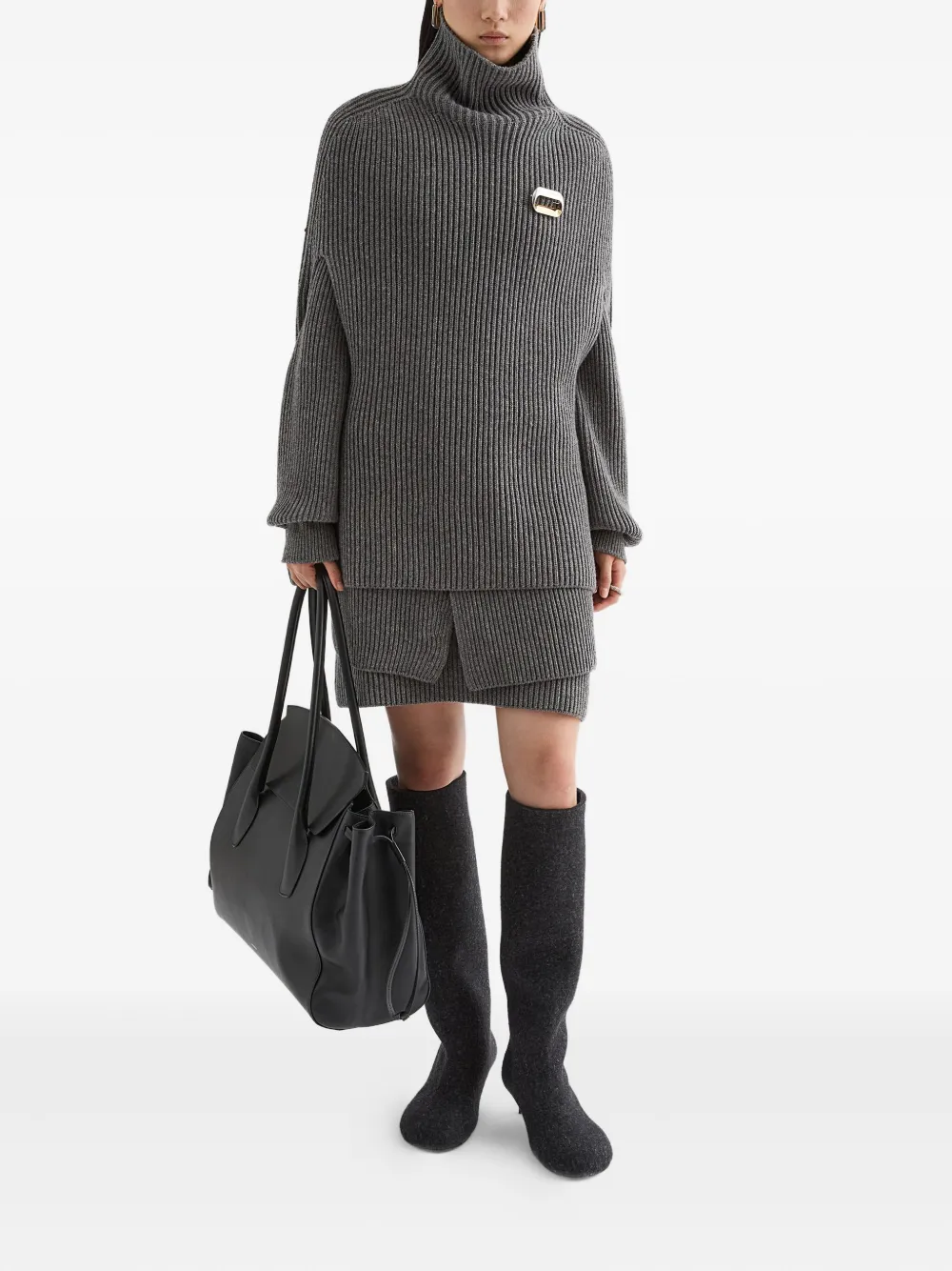 Кардиган в рубчик с высоким воротником JIL SANDER, серый