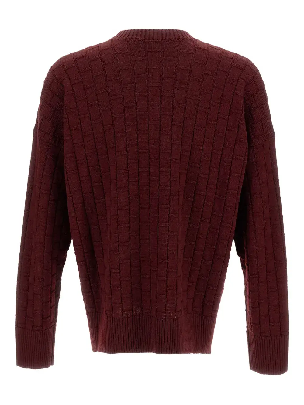 Бордовый ребристая шерстяная кофта с круглым вырезом и клетчатым узором, длинные рукава
