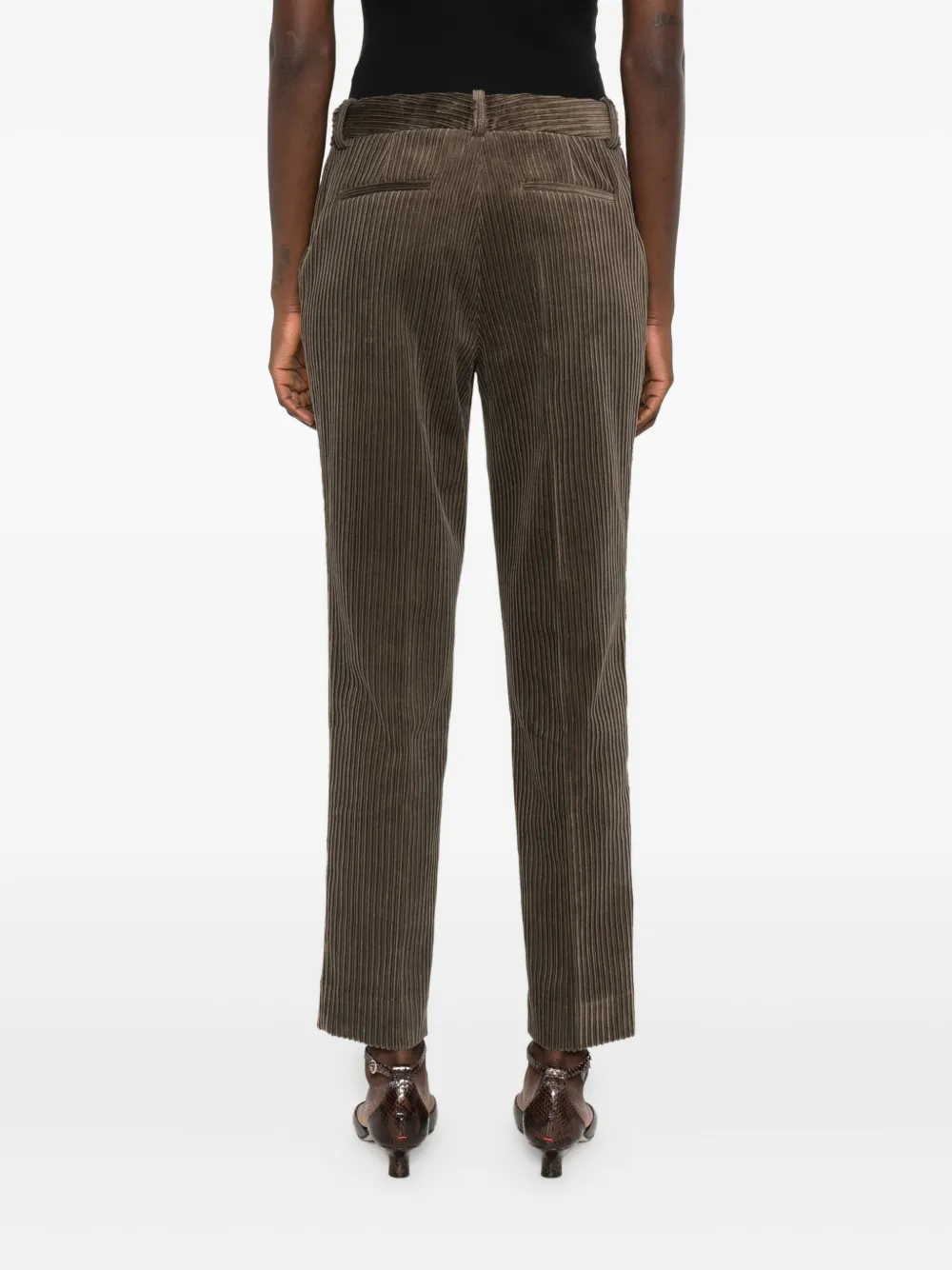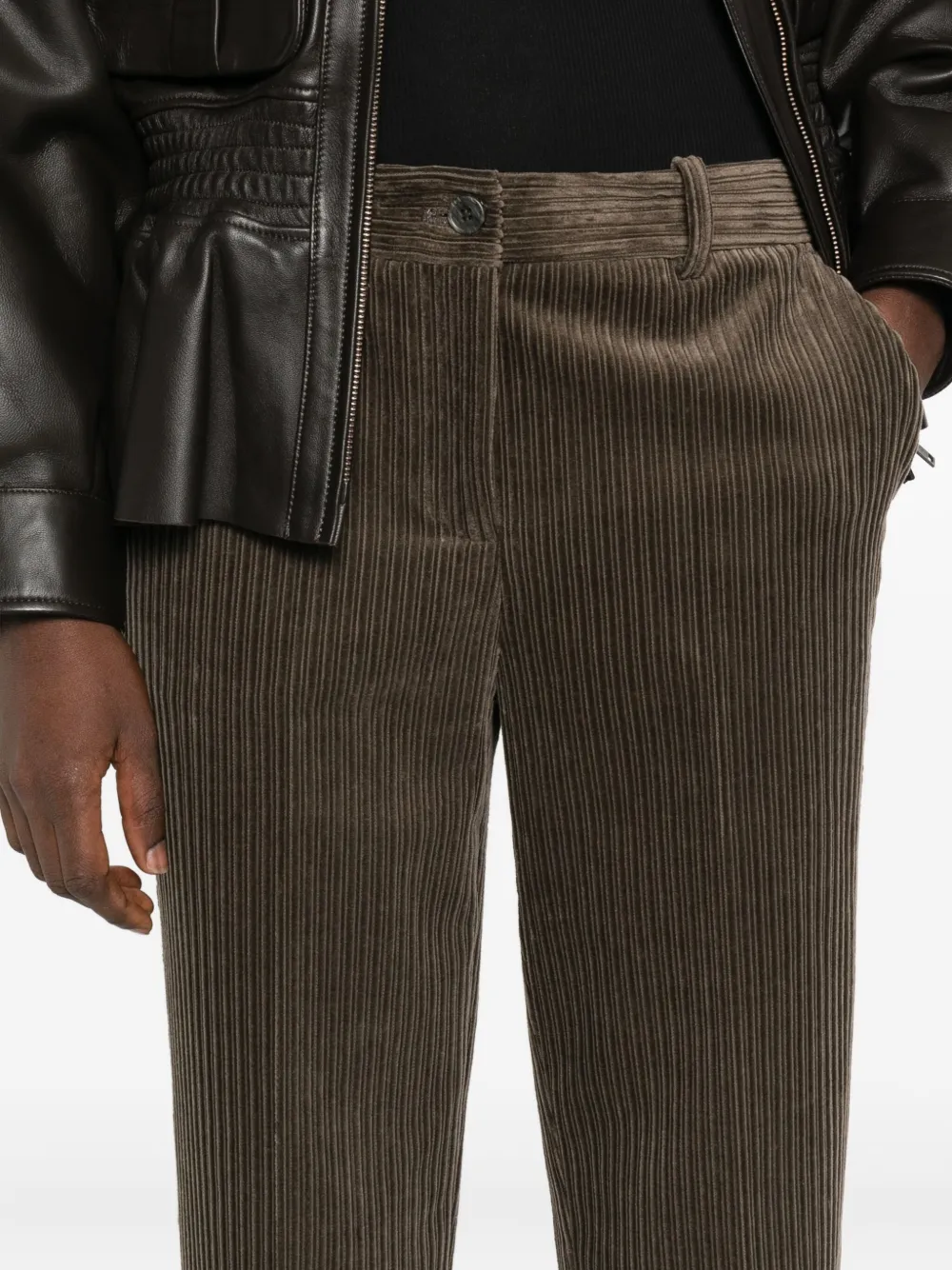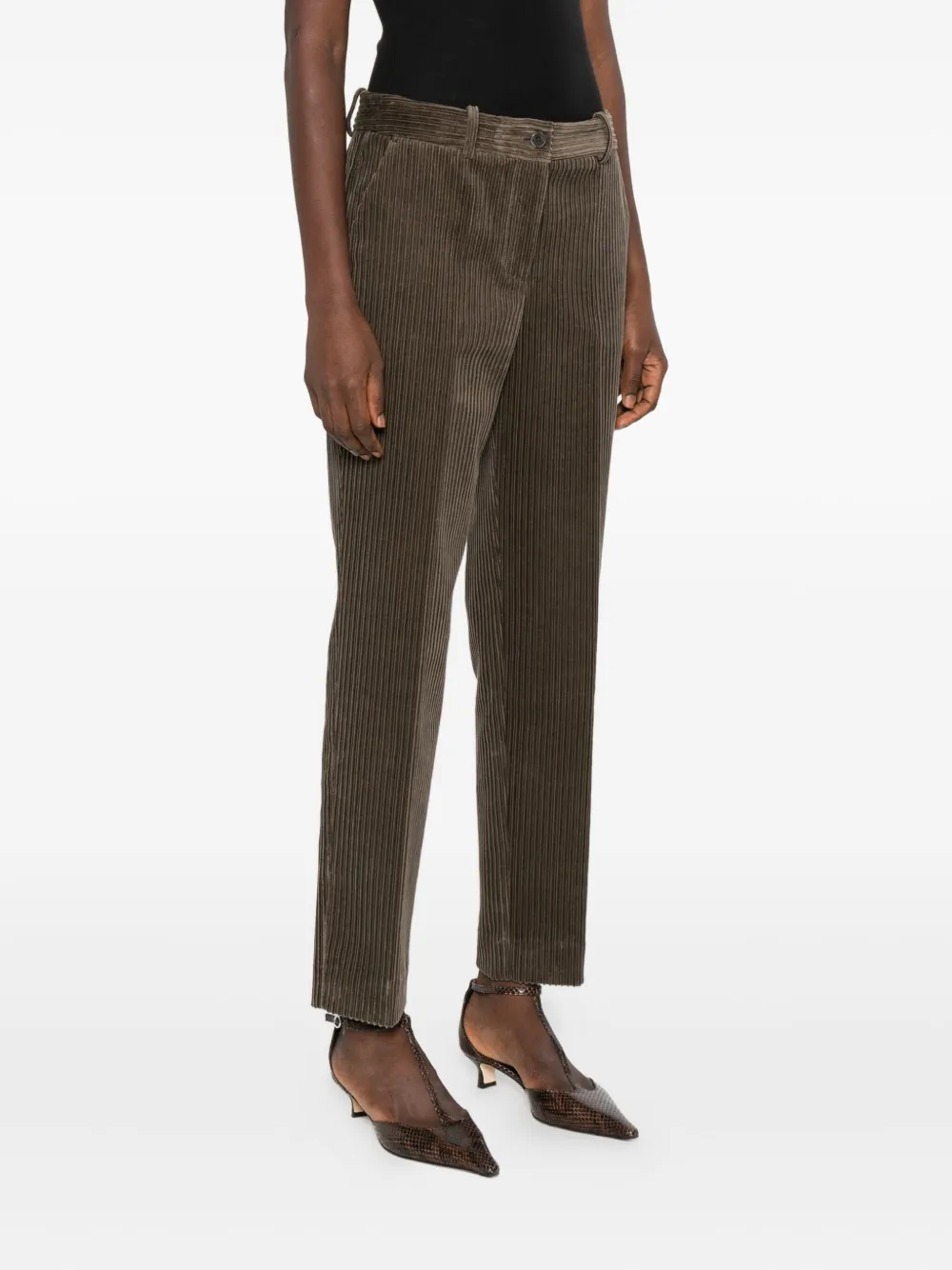 Зеленый вельвет с ребристым узором, передние карманы, прямой брючины