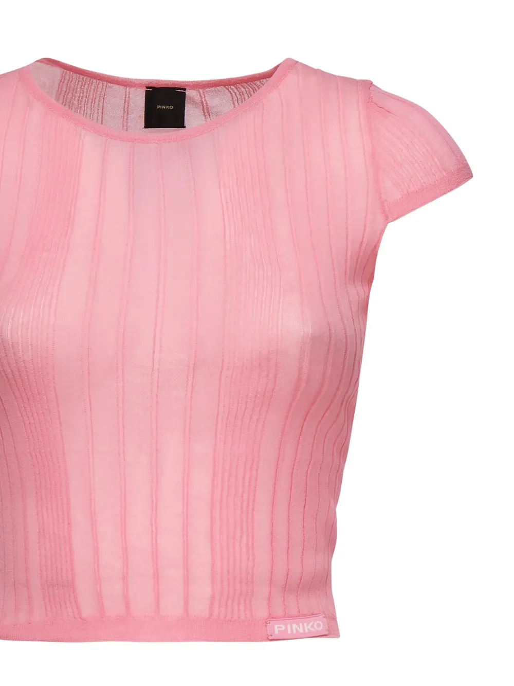 Топ в рубчик с круглым вырезом PINKO, розовый