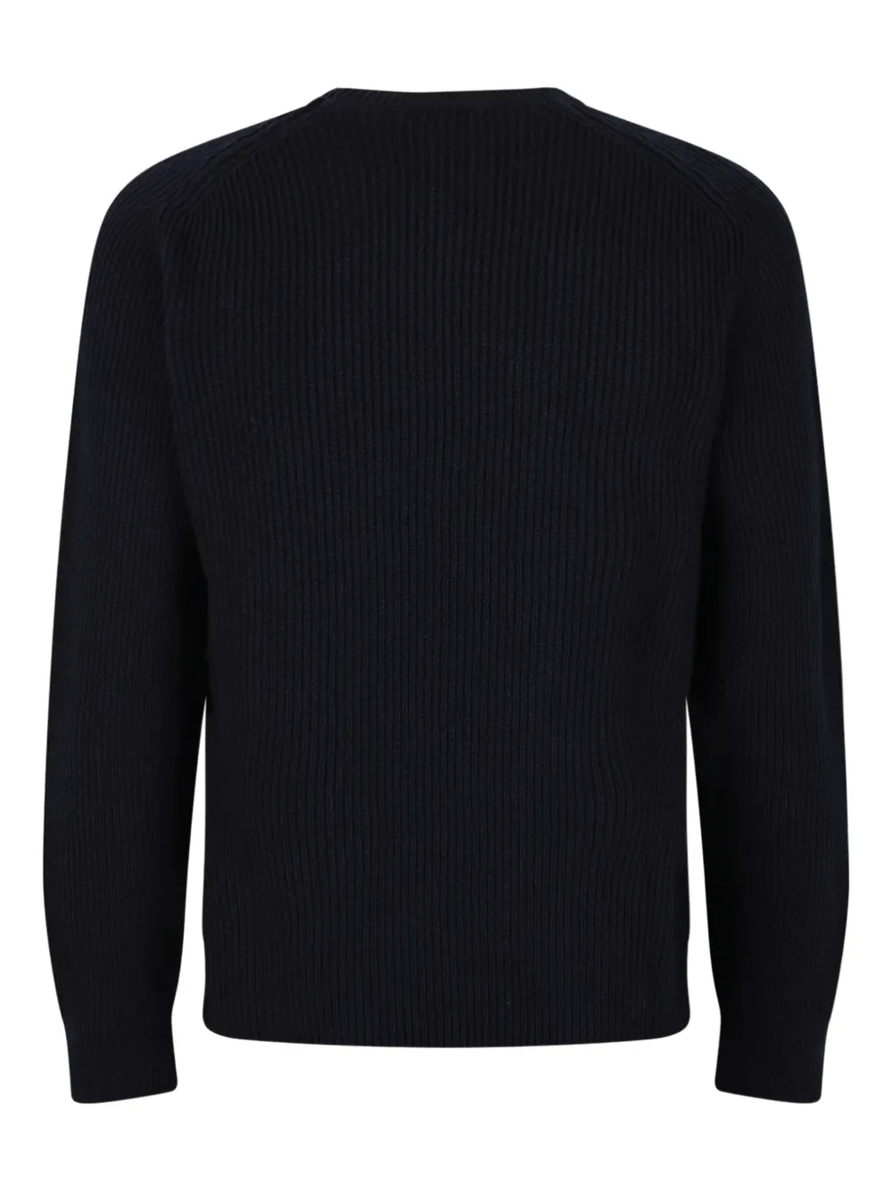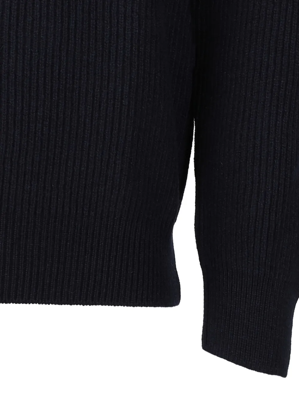 Темно-синий ребристая вязка, круглый вырез горловины, длинные рукава, прямой подол