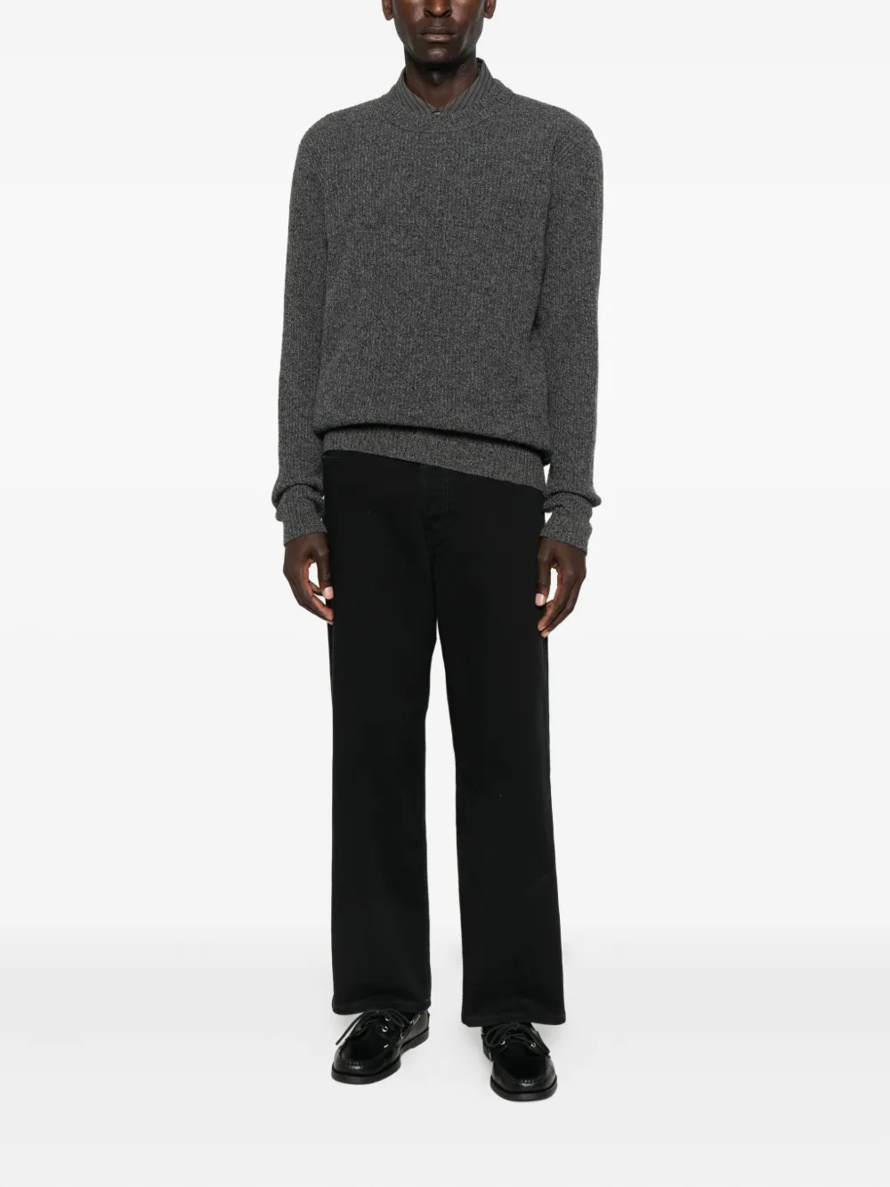Ребристый свитер с круглым вырезом Roberto Collina, серый