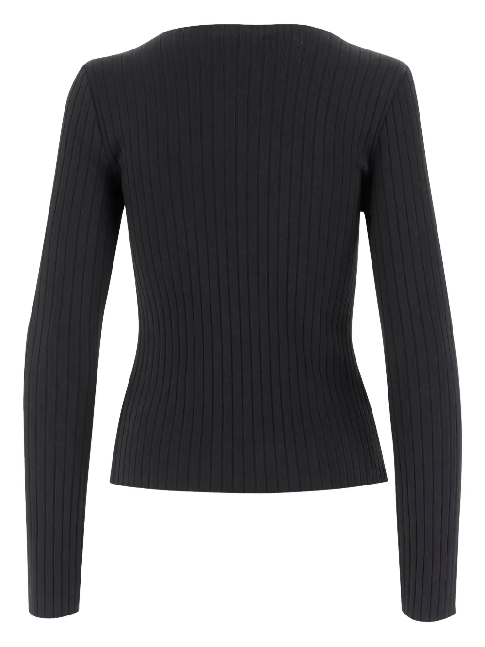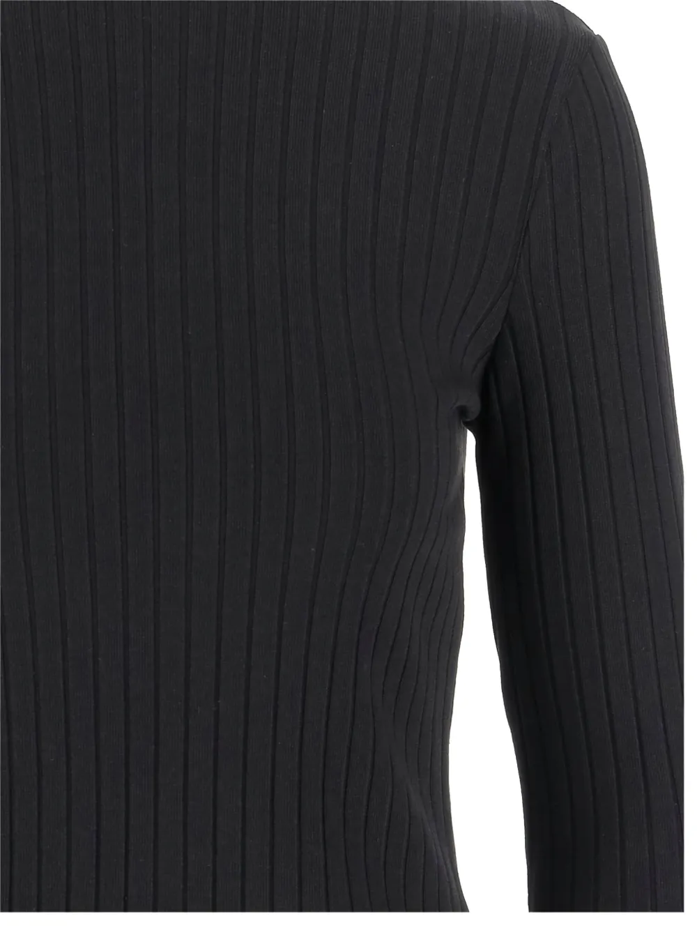Черный трикотаж в рубчик с круглым вырезом и длинными рукавами