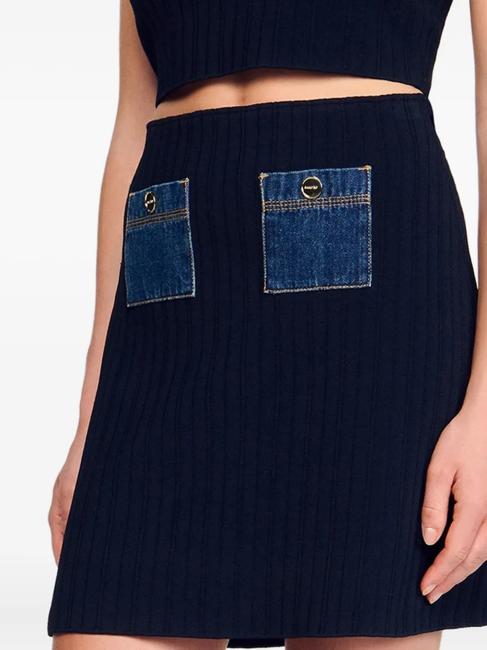 Юбка в рубчик с карманами из денима SANDRO, синий 51 341₽