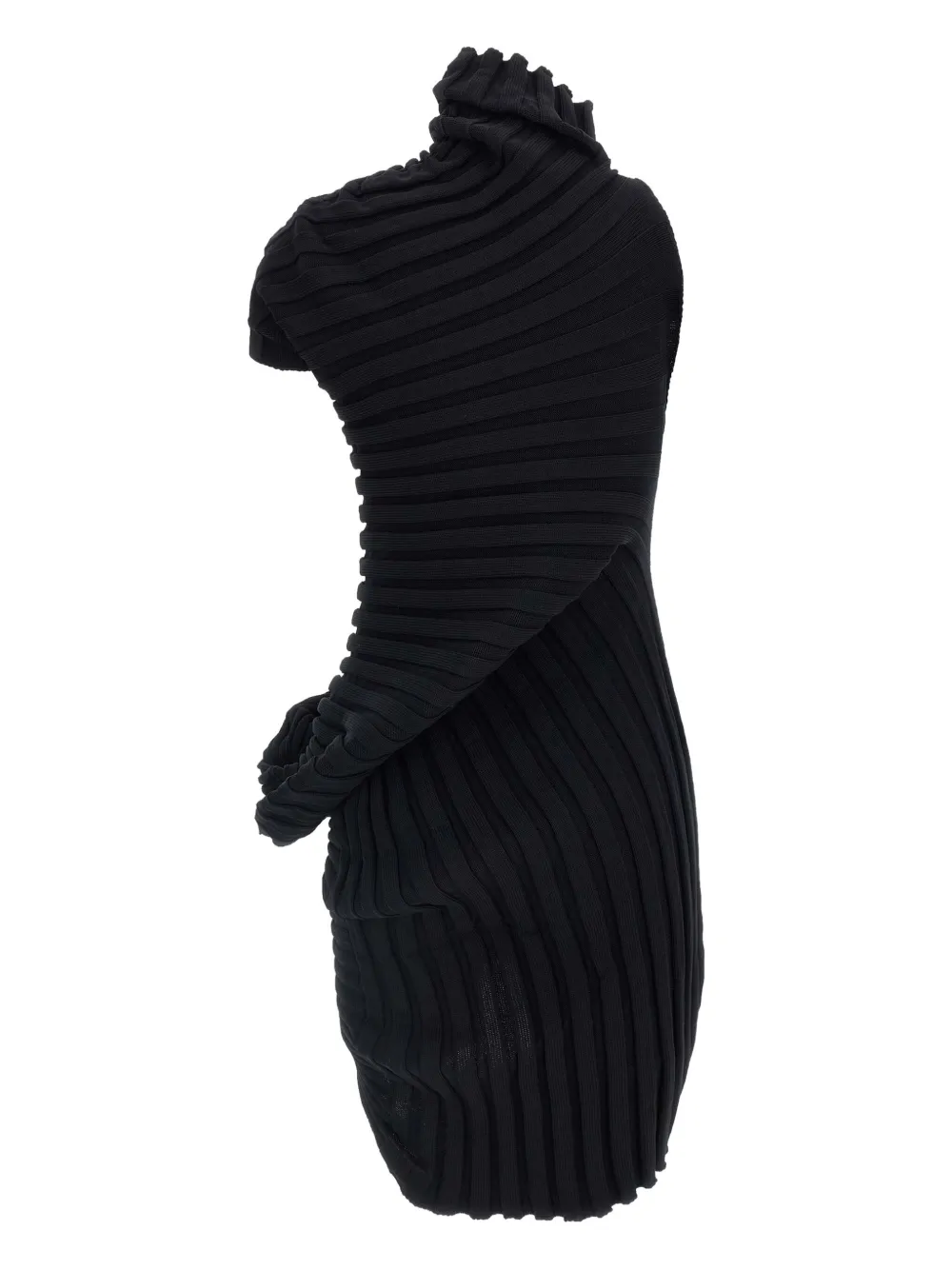 Платье в рубчик с высоким воротником Issey Miyake, черный