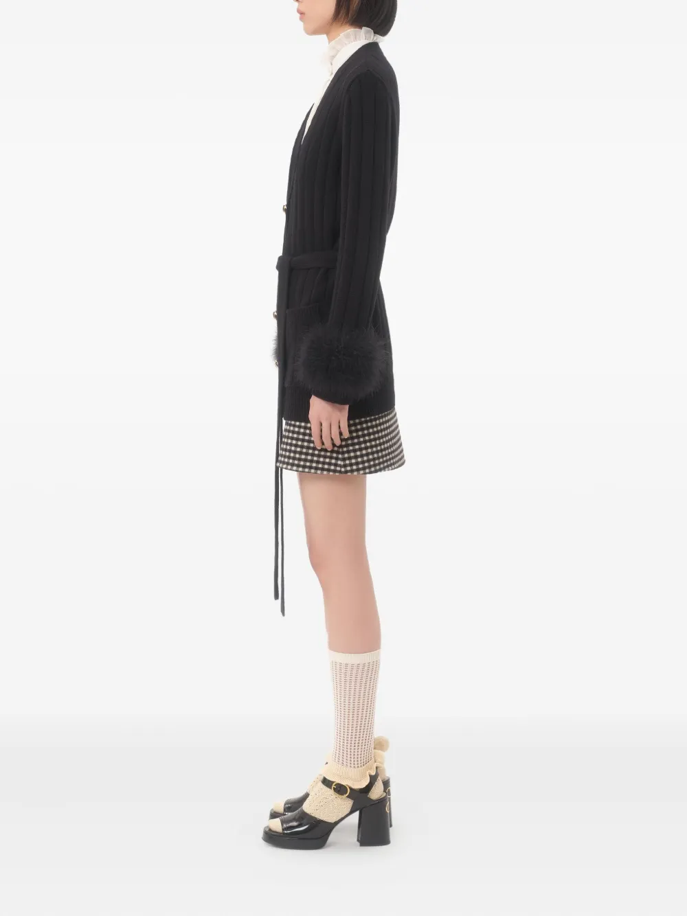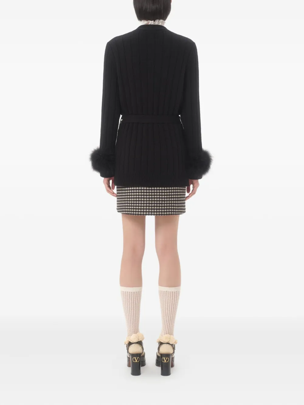 Кардиган в рубчик с перьями VALENTINO GARAVANI, черный