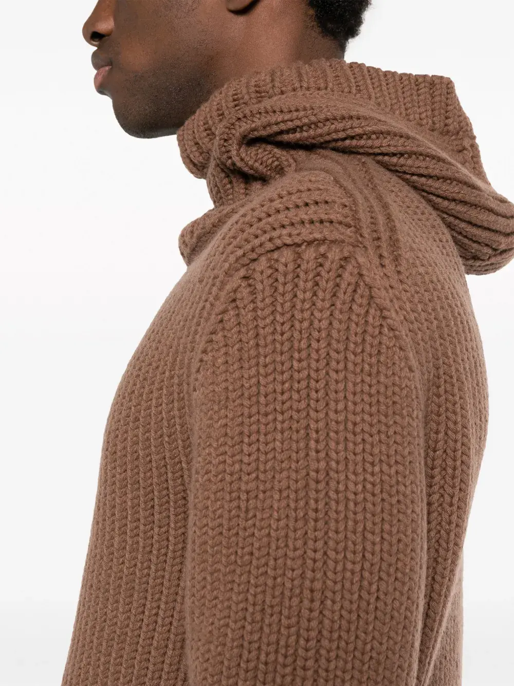 Джемпер в рубчик с капюшоном Lanvin, коричневый