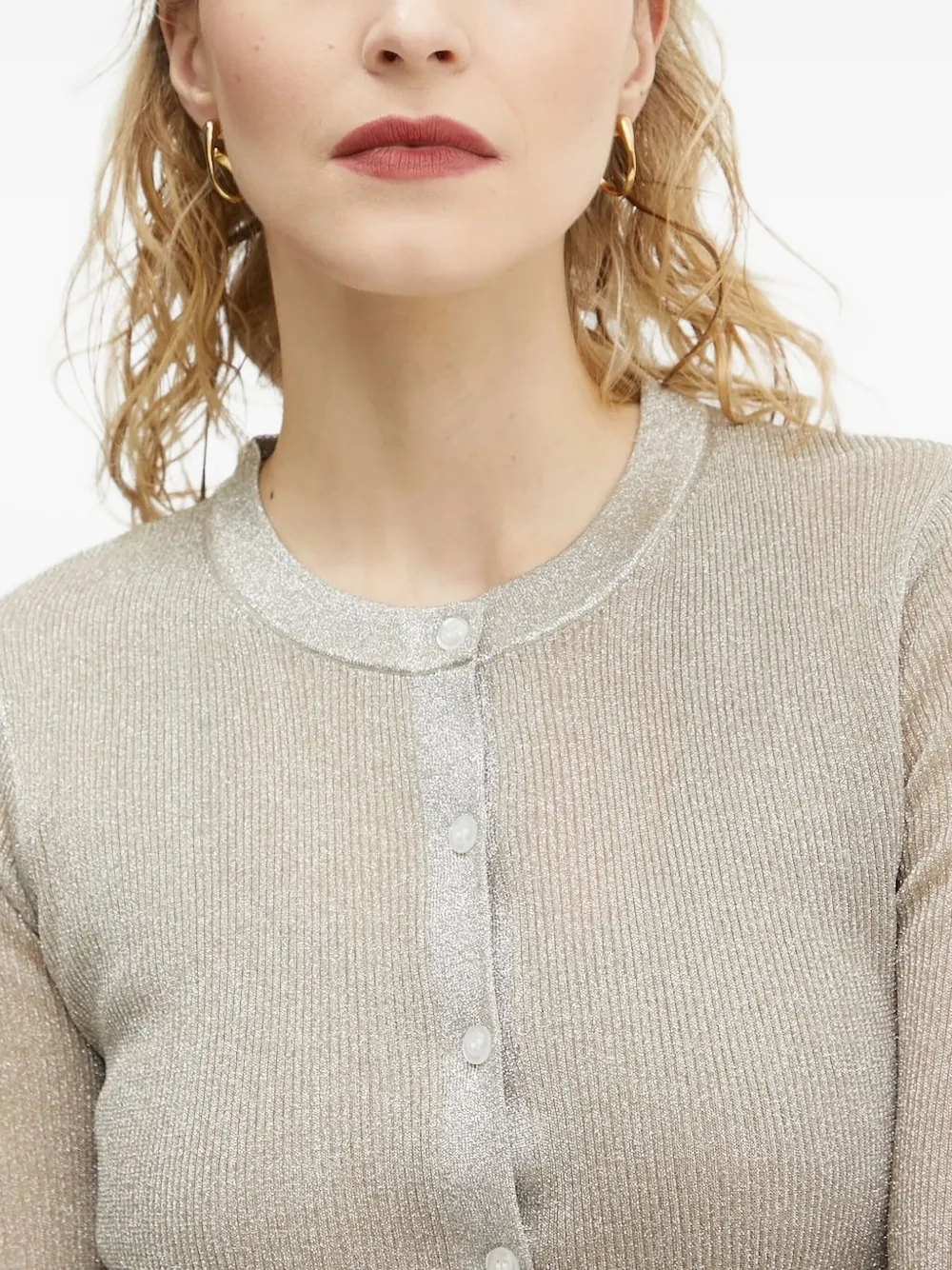 Серая ребристая фактура, пуговицы спереди, длинные рукава