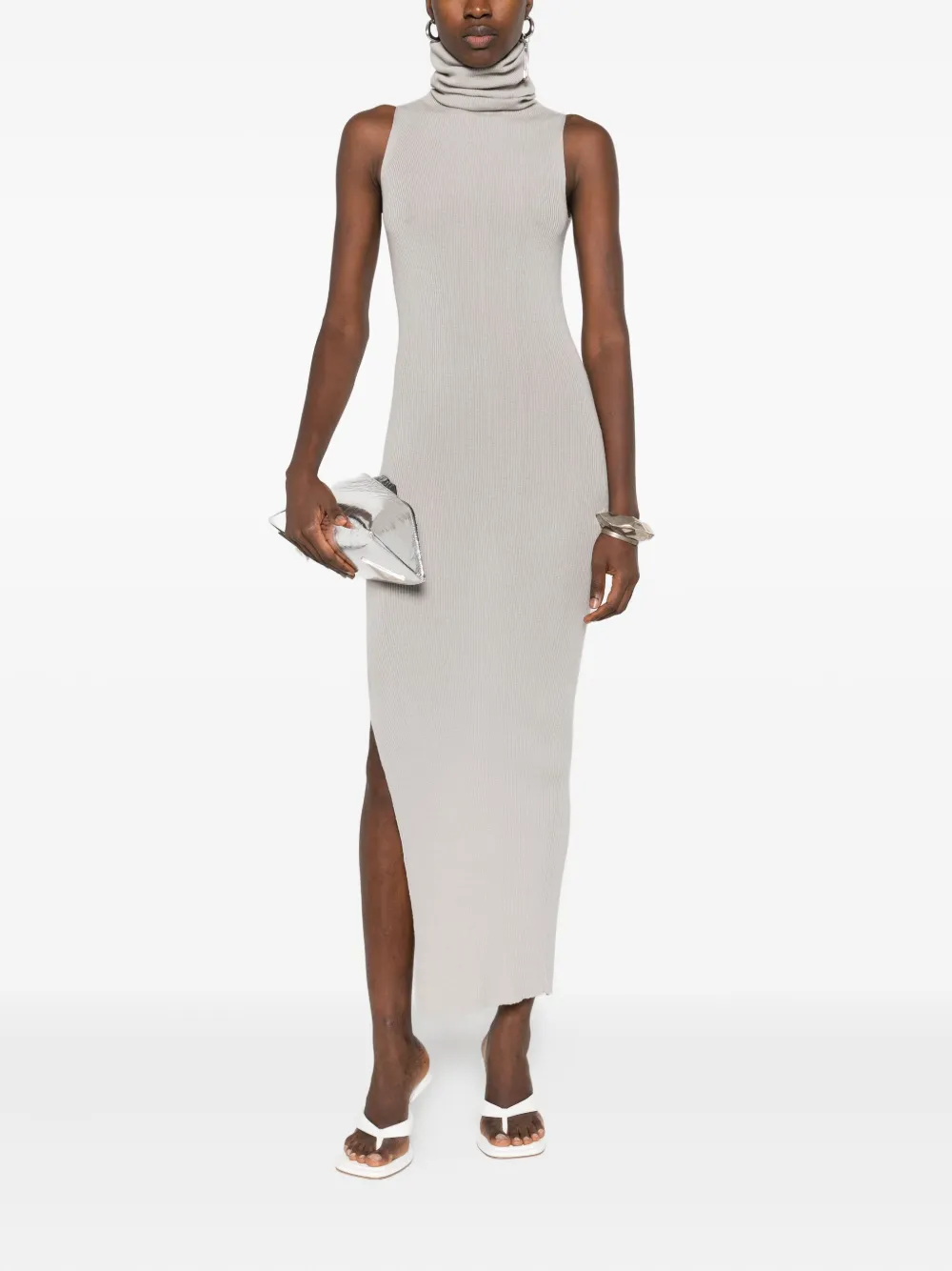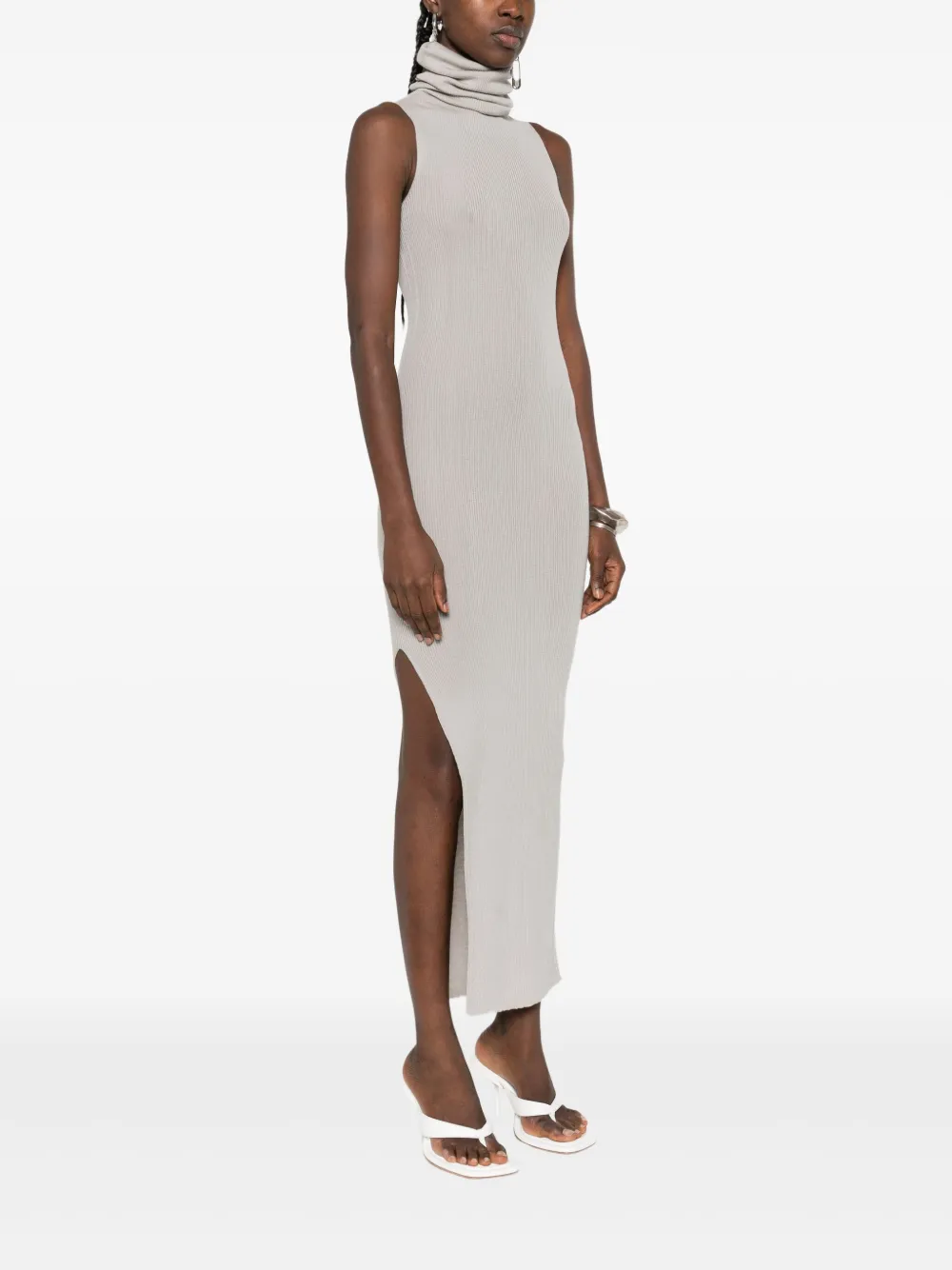 Платье миди в рубчик с высоким воротником Rick Owens, серый 43 660₽