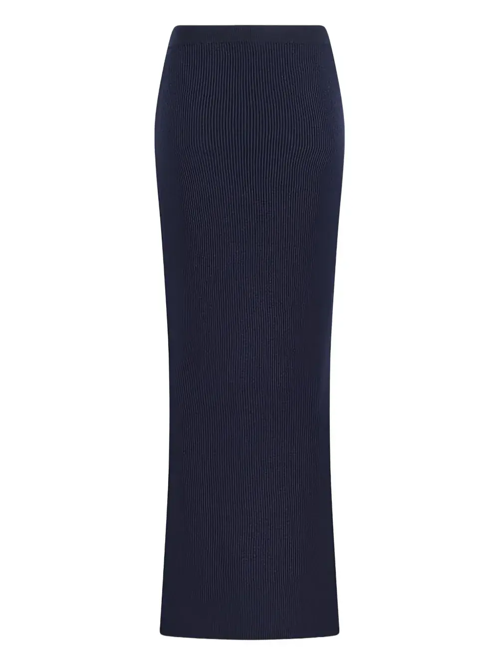 Темно-синяя ребристая фактура, длина миди, прямой подол, эластичный пояс